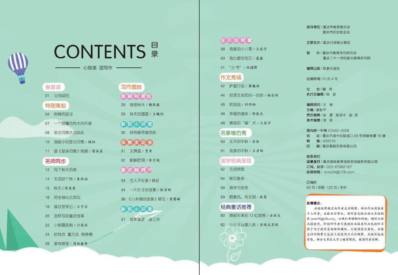 《新锐作文》(3、4年级)版设有“特别策划”、“名师同步”、“写作园地”、“写作秀场”、“名家模仿秀”、“国学经典呈现”、“经典童话推荐”七个栏目。在立足于名师辅导学生同步作文基础上,刊登学生佳作,提升孩子写作兴趣。每期还将带领孩子游览世界各国,阅读世界文化,了解世界名人,让孩子在获得写作技能的同时感受阅读乐趣,积累写作素材,正真意义上做到读与写的完美结合。