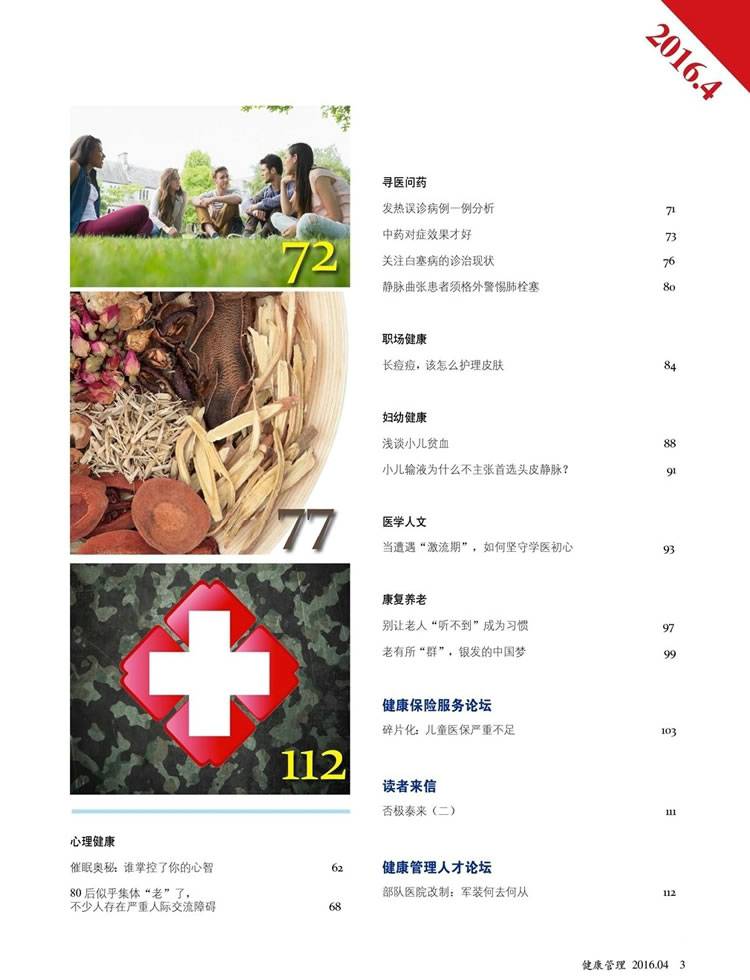 《健康管理》杂志是利用庞大的专家资源整合最专业、最权威的健康知识,读者群体:关注健康管理的所有人群。