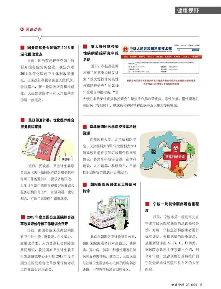 《健康管理》杂志在《中国医学论坛报》社和其他合作伙伴的指导和帮助下,通过深度合作,从我国健康服务事业发展的需求出发,争取透过面向基层健康管理服务机构和服务人群的全媒体传播机制,为全面提升我国基层临床医生、健康服务从业医护人员的服务水平和我国国民健康维护能力的新型健康传播机制做出实证性探索。