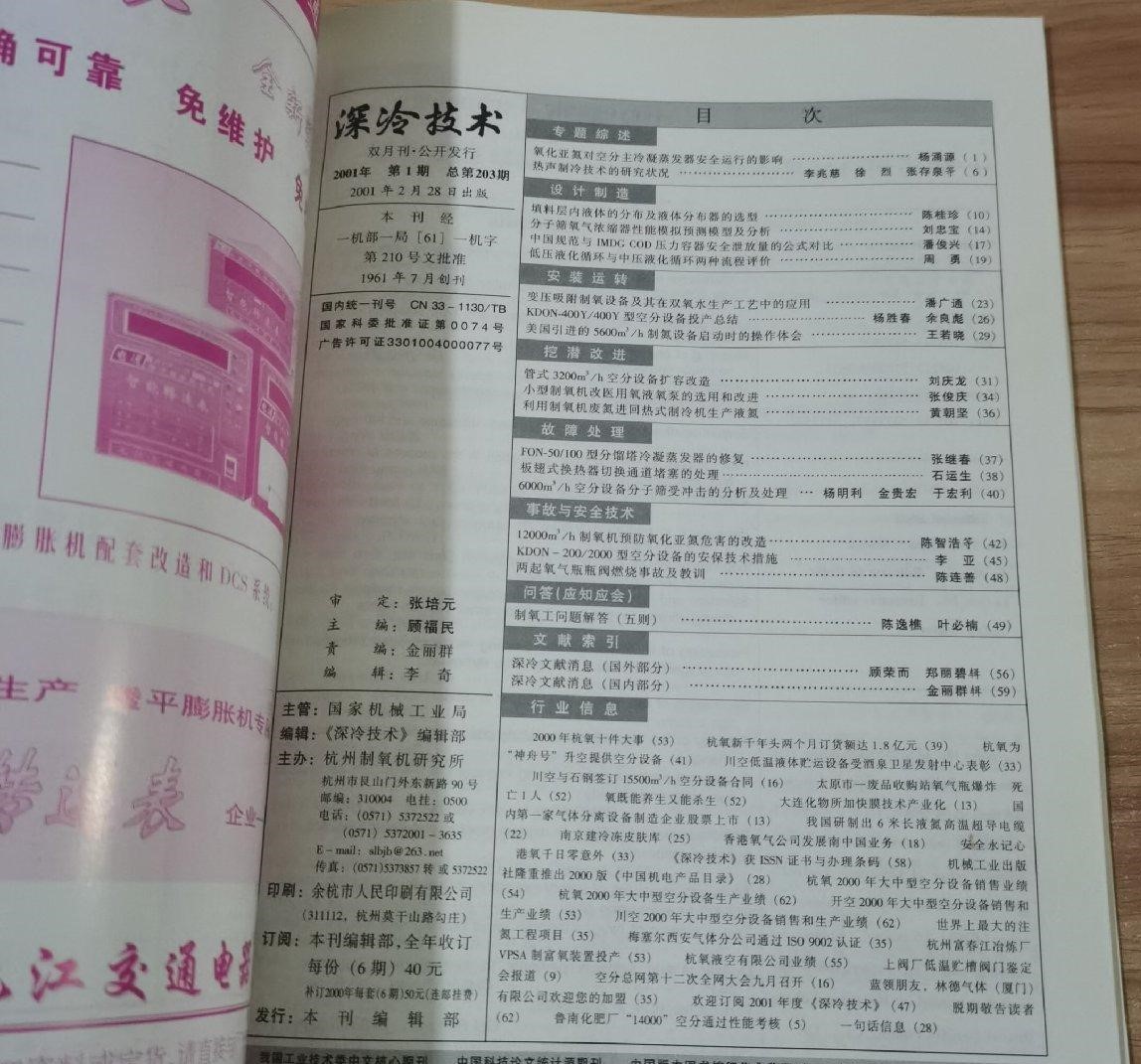 《深冷技术》(双月刊)创刊于1961年,由深冷技术杂志社主办。由杭州制氧机研究所编辑出版。