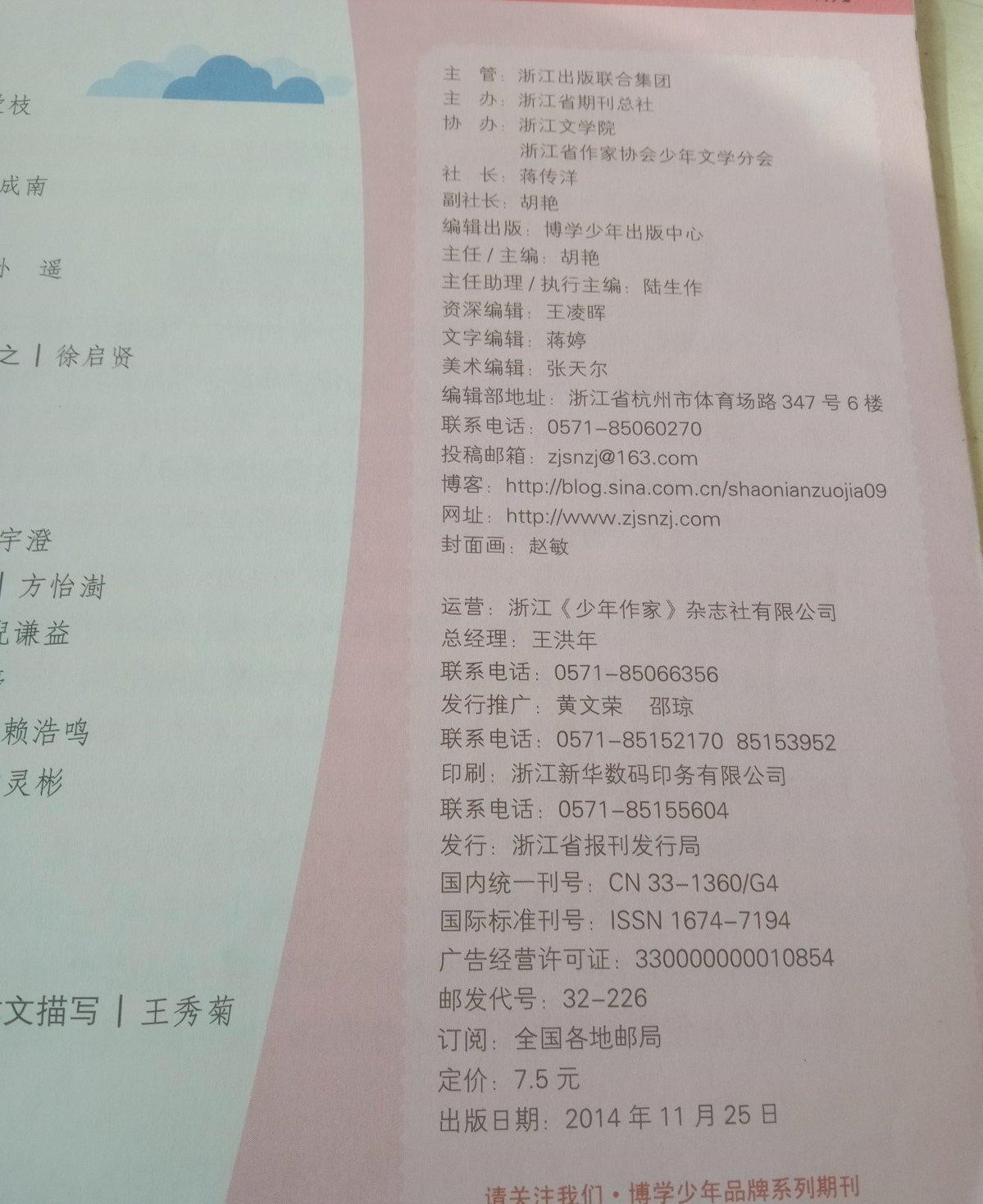 《少年作家》杂志创刊于2009年,由浙江省期刊总社主办,浙江文学院与浙江省作家协会少年文学分会协办,面向全国,公开发行。杂志现为半月刊,以“亲近文学”为念,针对小学生,分上半月刊“开心阅读”与下半月刊“轻松写作”,争做学生“身边的语文课堂,笔下的作文天地”,旨在“服务教育,拓展阅读,引领写作,培养少年儿童的文学情怀”。