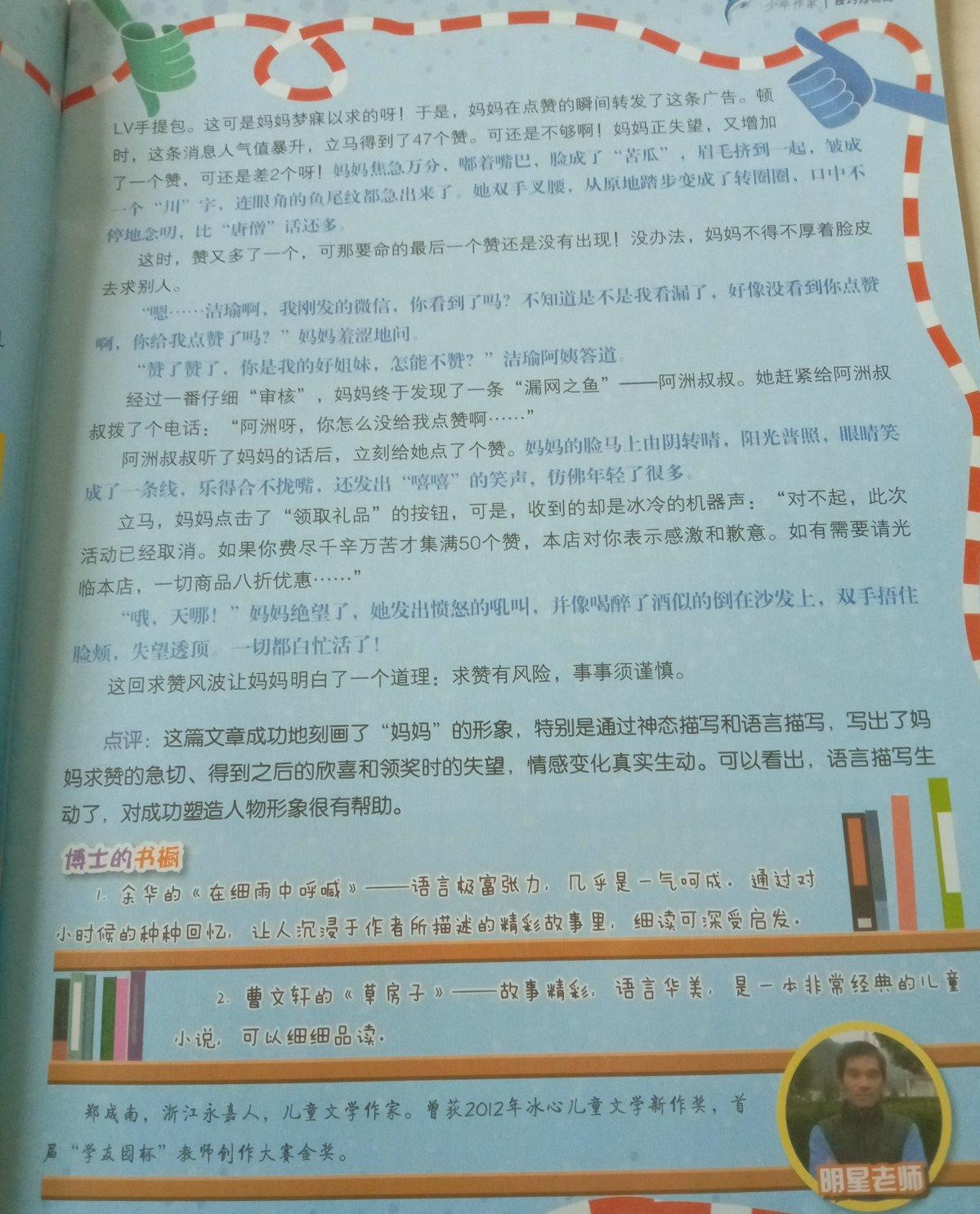 这是一本比作文老师更加有方法,更加厉害,更加轻松的杂志!围绕语文课本,讲解每个单元的作文题目,邀请知名作家、特级教师、资深编辑全方位立体打造,让你快速掌握写作技巧,写人、写景、写物……写日记、作文考试、参加作文比赛……通通轻松搞定!