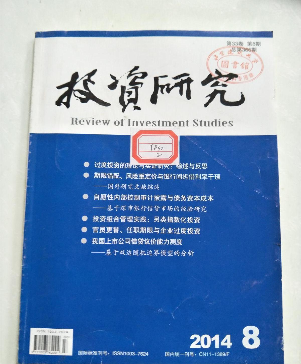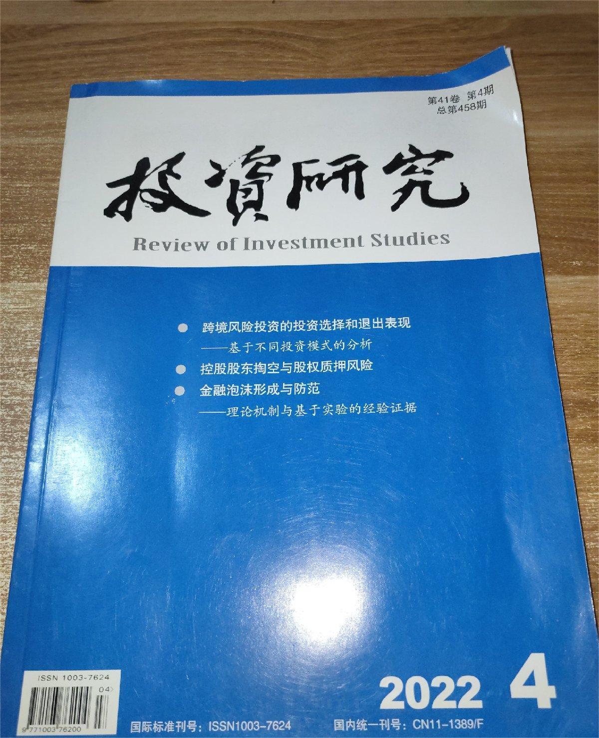 《投资研究》(月刊)创刊于1982年,由中国建设银行股份有限公司、中国投资学会主办。专业学术性刊物。刊载投资宏观控制和微观管理的基础理论和应用理论研究成果,探讨财政投资、银行长期信用投资、企业和证券投资管理的发展问题,并介绍国外投资研究的新动向和学术成果。