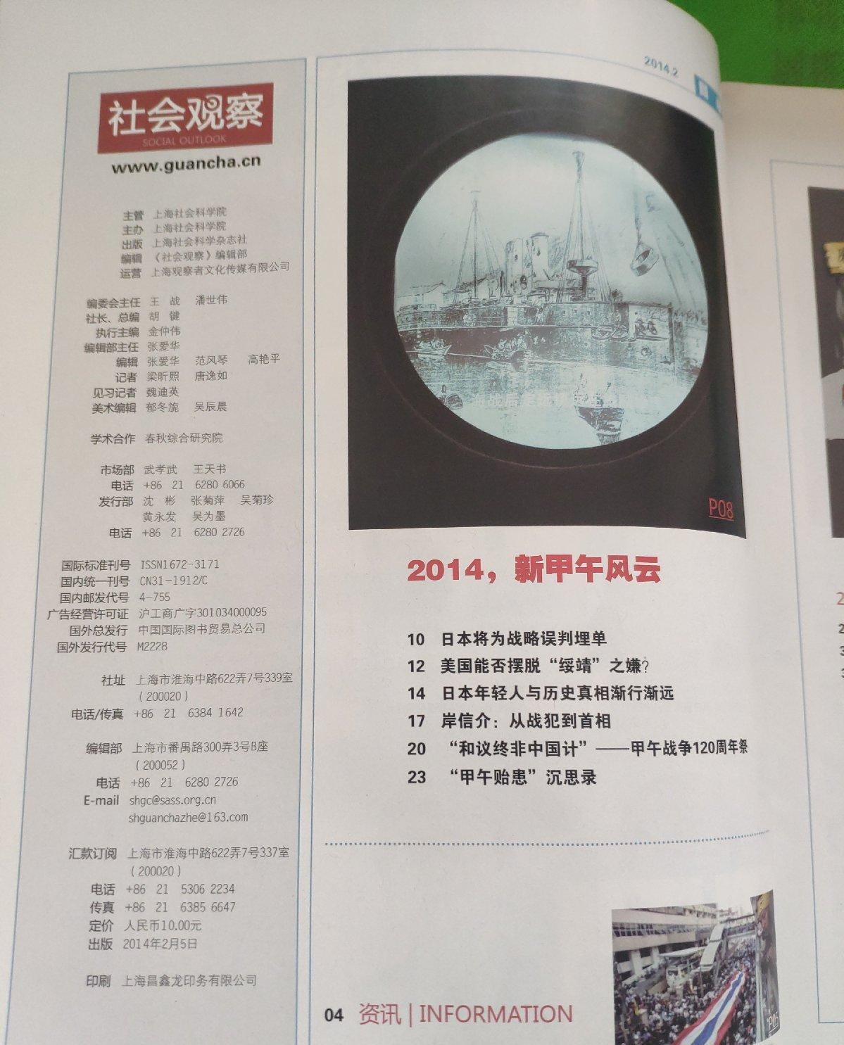 《社会观察》(月刊)创刊于2003年,是由上海社会科学院主办的社科刊物。本刊宗旨是传播国际最新沿的学术成果和知识分子群体最新锐的科学思想,深入分析国内外形势,以社会科学家的眼光冷静解读世事万象,让希望掌握时代脉搏的精英人士从中汲取有益的精神营养。