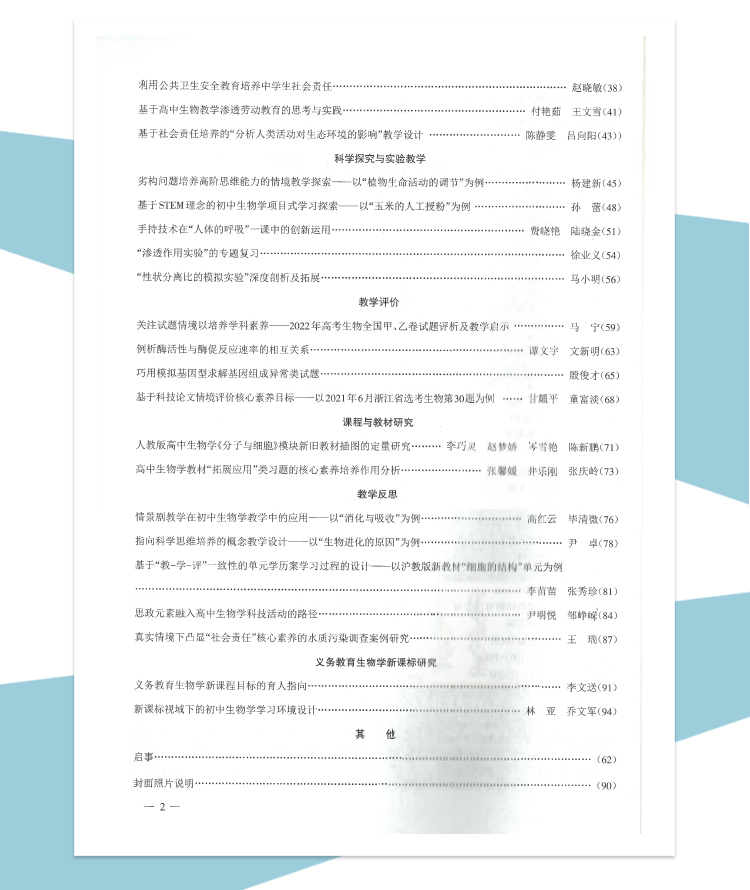 主要栏目设有生物学基础知识与参考资料、生物教学研究与实践、生物学实验技术与科技活动、生物学习题与练习、生物学新标准和新教材。