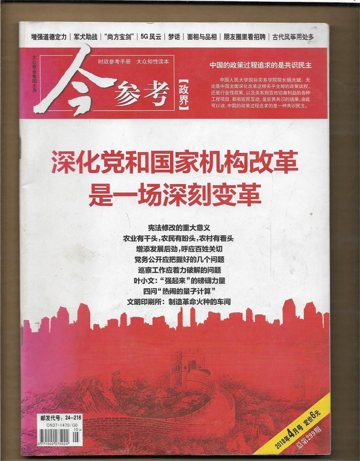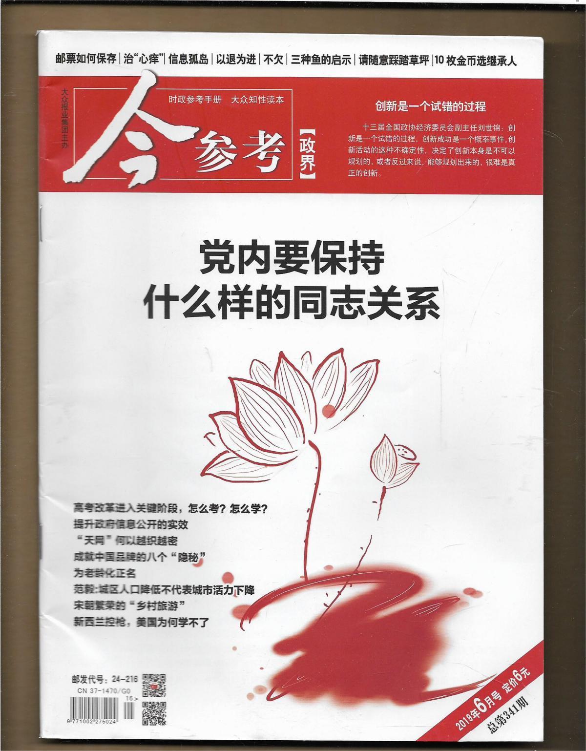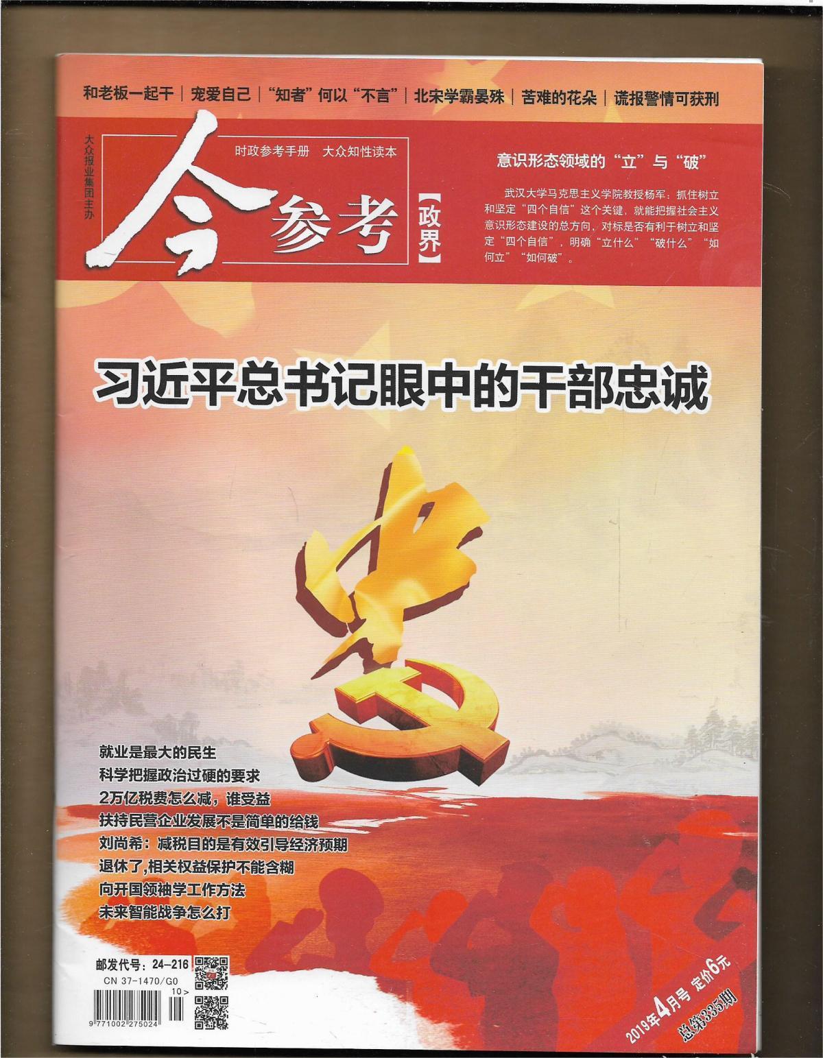《今参考》杂志系国内新闻资讯类文摘的代表性刊物,刊物以提供政经资讯、追踪时事热点、服务职场创业、解密历史档案为主,为领导必备、百姓爱读之物。