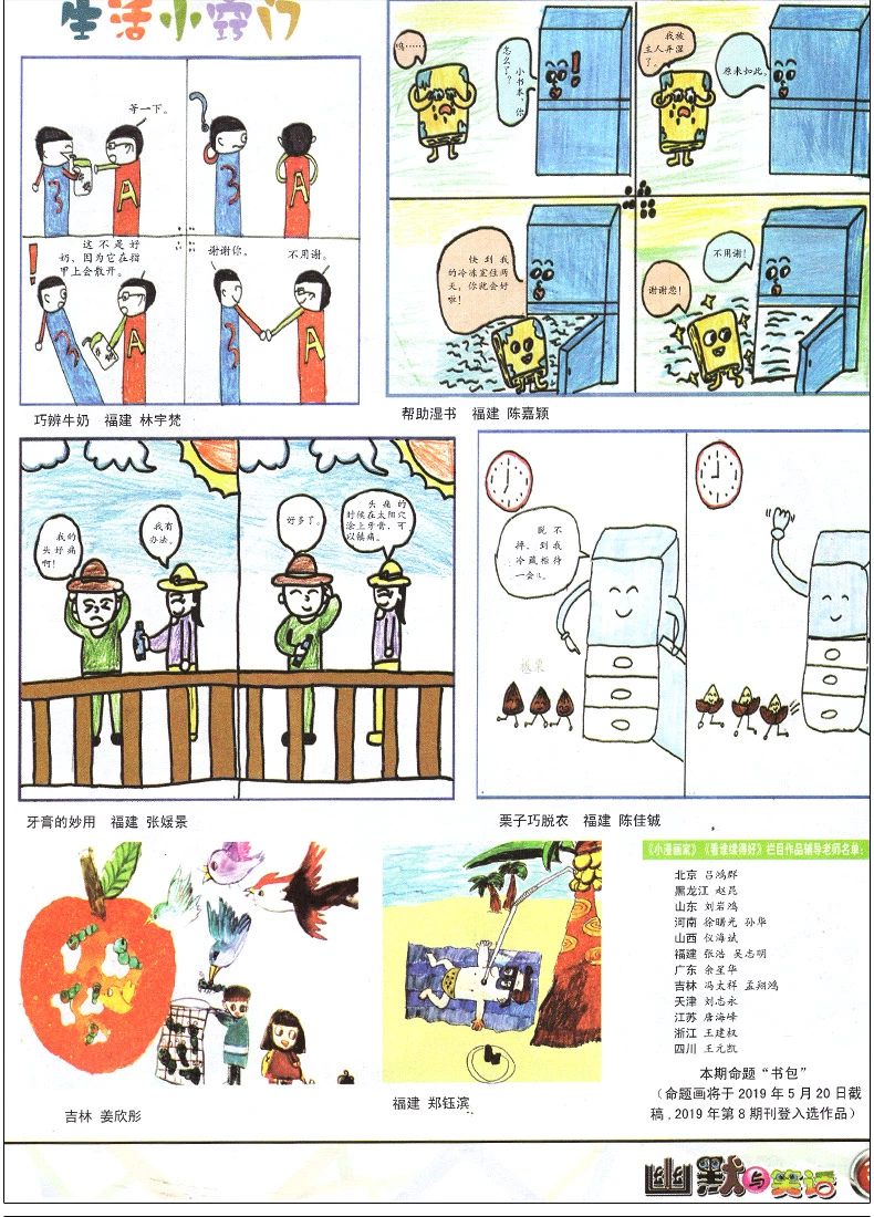 《幽默与笑话》杂志下半月刊(儿童彩图版)以图为主,配以文字解说的连环画为佳,每篇作品要求其画面为6-30格,表现形式以漫画技法为最佳,其他表现形式也可。同时需要高质量的独幅彩色漫画。
