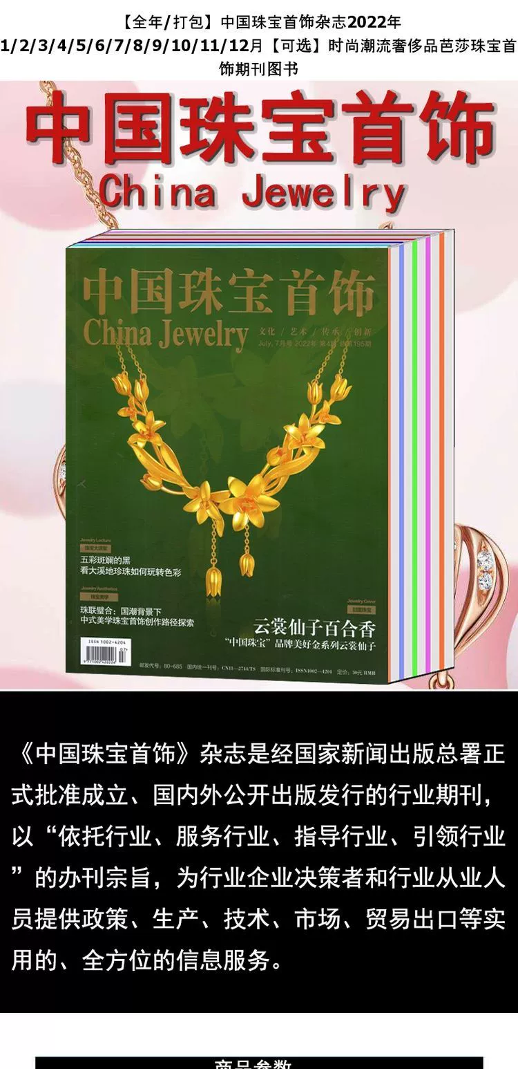 《中国珠宝首饰》杂志以“依托行业、服务行业、指导行业、引领行业”的办刊宗旨,为行业企业决策者和行业从业人员提供政策、生产、技术、市场、贸易出口等实用的、全方位的信息服务。涵盖国内外市场前沿信息,展现产品的精湛绝伦绚丽多彩,以翔实的文字、精美的图片、时尚的设计、华丽的包装印刷,为业界搭建了一座学习、交流、沟通的桥梁。
