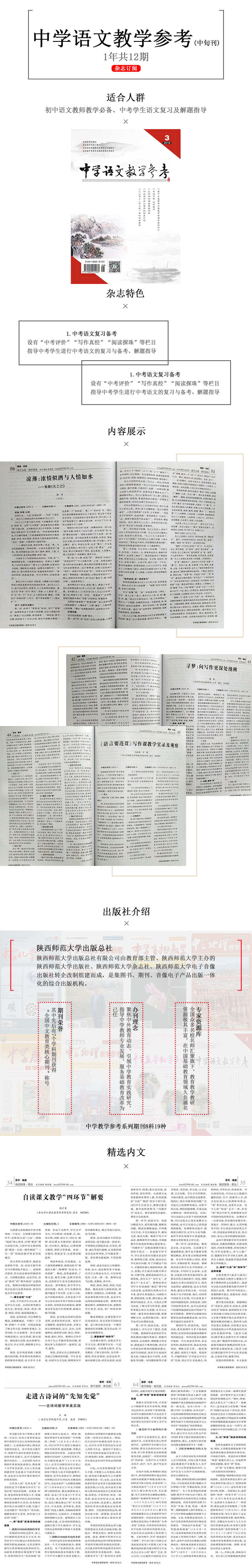 《中学语文教学参考》创办于1972年,是由教育部主管,陕西师范大学主办,中学语文教学参考编辑部编辑的国家级刊物。全国中文核心期刊,全国优秀语文期刊。《中学语文教学参考》 创刊于1972年,是由中华人民共和国教育部主管,陕西师范大学主办的国家级刊物,是全国优秀语文期刊,多次被认证为全国中文核心期刊,先后获得人大复印报刊资料“重要转载来源刊”“全国语文报刊编校质量优良奖”等殊荣。《中学语文教学参考》中旬刊,主要读者为全国初中语文教育工作者,引领教研新方向,切实服务一线教学。