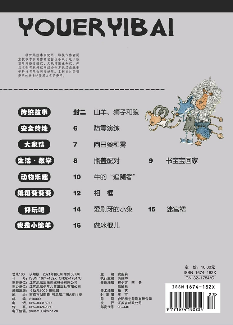 《幼儿100》,2008年创刊,由益智版、阅读版和教师版组成。本刊关注幼儿身心发展的特点,尊重幼儿学习过程的独特性,将现代教育理念融入其中,综合幼儿在园学习、家庭