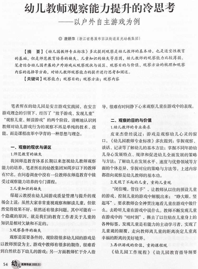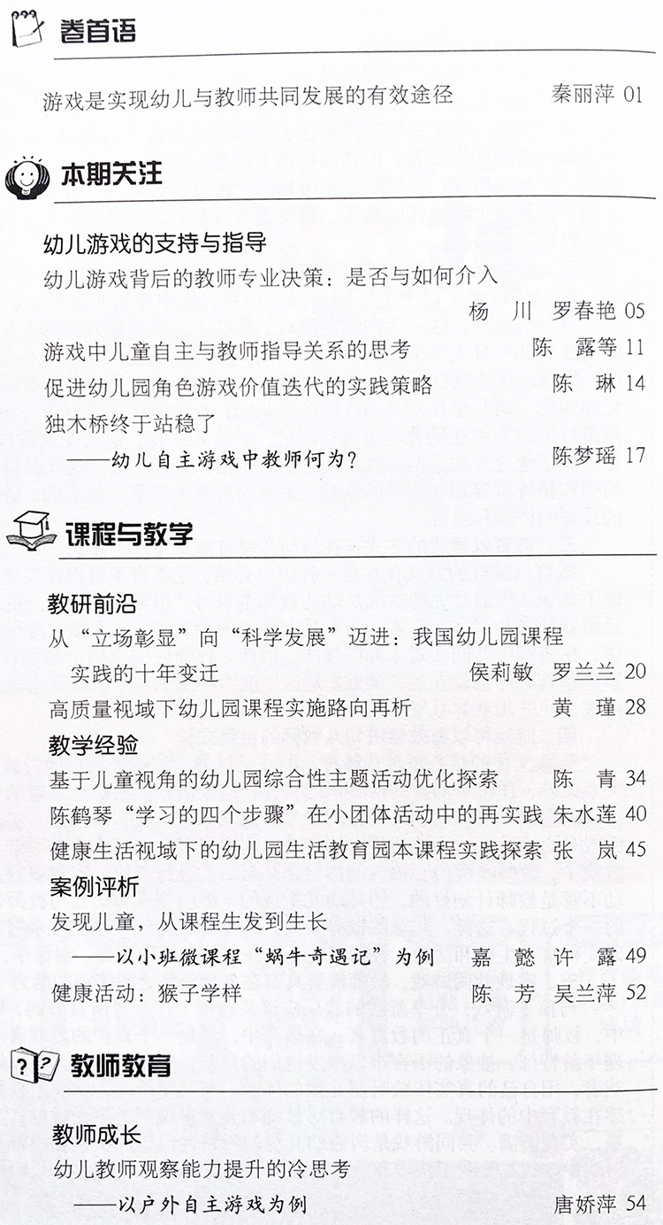 《幼儿教育导读幼教版》是专业教师的成长文摘。全面提供幼教前沿理论、教研经验、园所改革及经营管理的资讯和方法,助力园长、老师、幼教理论工作者专业成长。