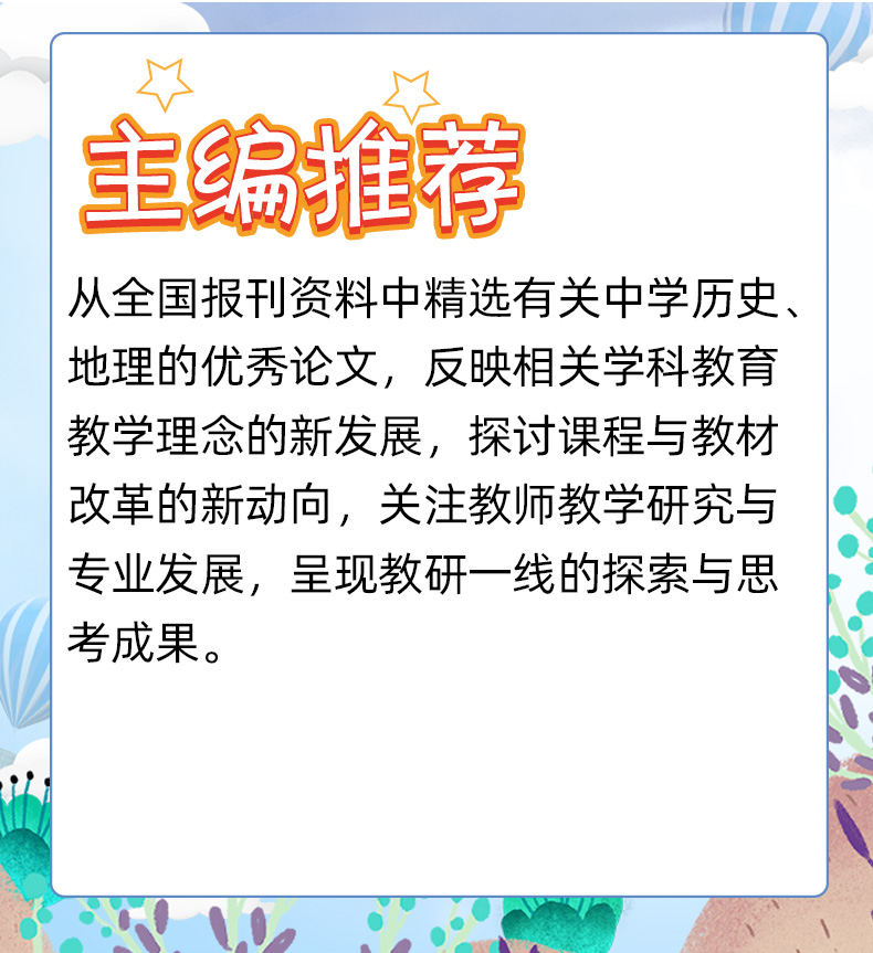 《中学历史地理教与学》从全国报刊资料中精选有关中学历史、地理的优秀论文,反映相关学科教育教学理念的新发展,探讨课程与教材改革的新动向,关注教师教学研究与专业发展,呈现教研一线的探索与思考成果,推广更具操作性和实用性的教学思路和方法,为广大中学教师及教育研究工作者提供更有效的信息资料。
