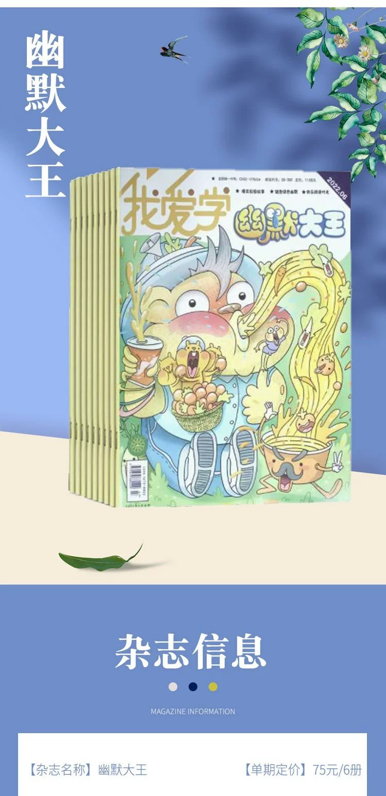 《幽默大王》杂志让孩子看一些笑话、学一点幽默,不仅能给他们带来心情的快乐,而且会在不知不觉中培养孩子的幽默感,使他/她的性格变得积极乐观,面对逆境更加坚强。