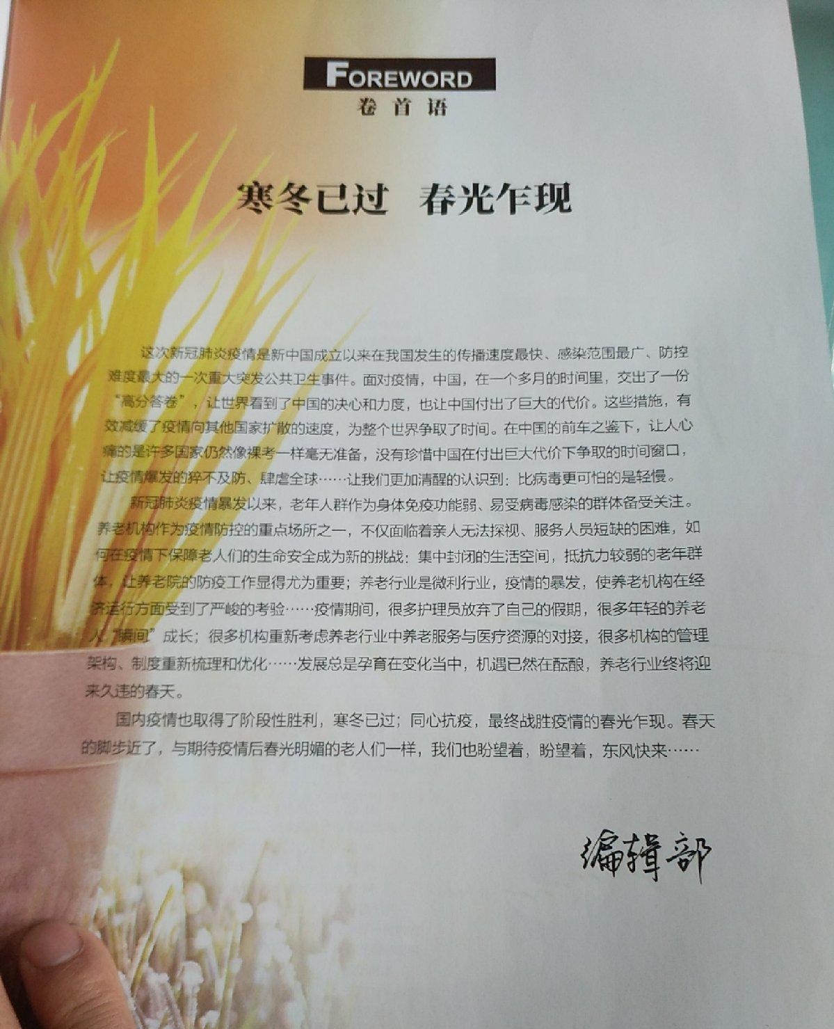 杂志将秉承“为养老行业提供决策参考与交流平台”的办刊理念,帮助读者了解中国养老行业发展过程中出现的新问题、新现象、新观点;党和国家关于养老方面新的方针与政策;社会养老工作中涌现的新人物与新事迹;社会养老行业的新动态与新理论;国外社会养老机构的新模式与新经验。