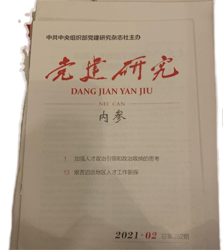 《党建研究内参》是由中组部主管的党建研究杂志社主办的内部刊物,侧重刊发党的建设方面有一定内部性、参考性和探索性的文章和资料。
