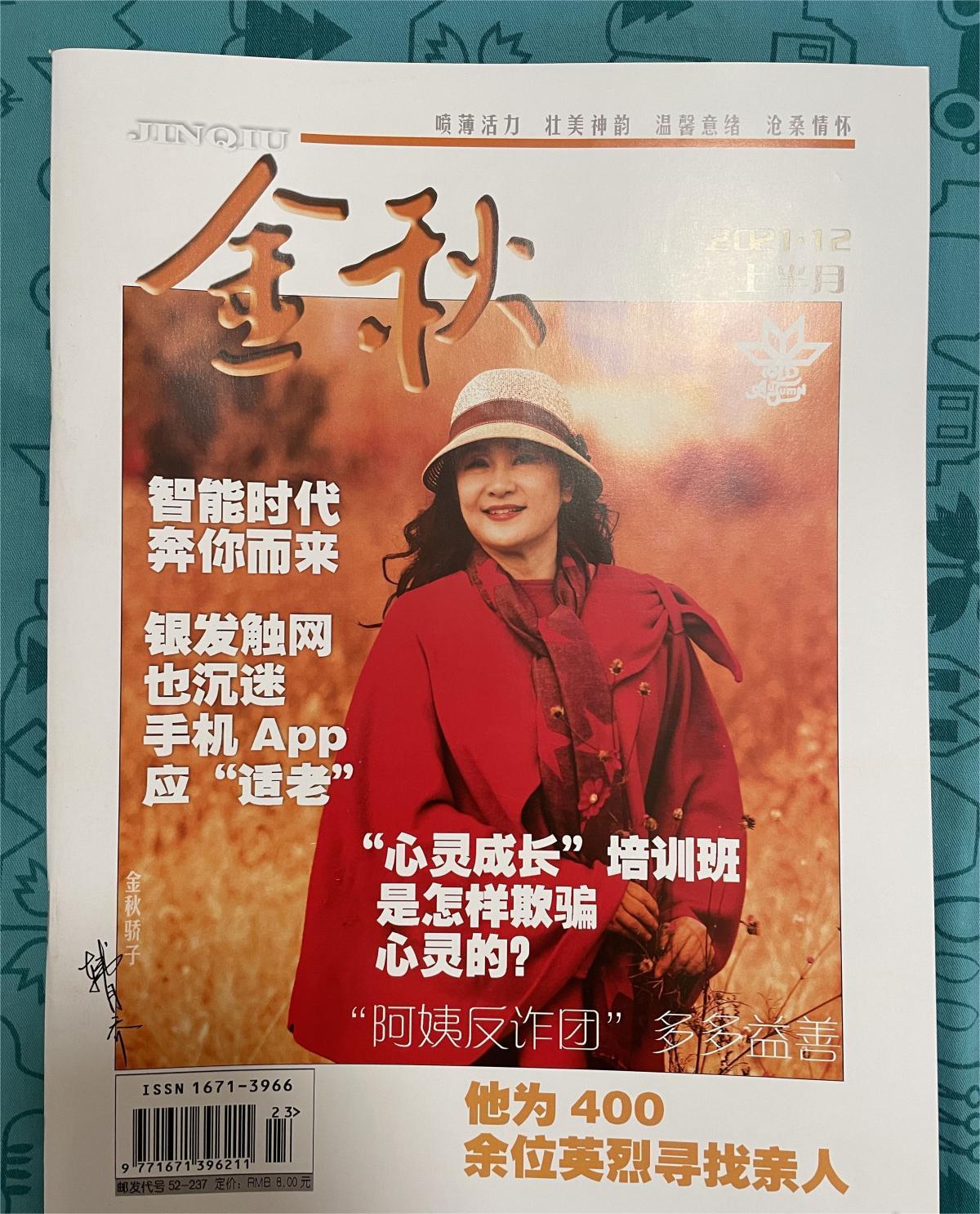 《金秋》主要栏目:【感悟】【情感驿站】家长里短、手足情深、那个年代的爱情、情回梦绕、金婚榜【老年体育】体坛明宿、团队风采、人物传真、舞拳弄棒、我的爱好、球技指点、民俗体育、西方体讯【老年大学】我的老年大学、指点风雅、国学讲堂、吟诗填词、刊授讲堂、名作鉴赏、珍藏轶事、金秋收藏、曲艺杂谈【健康养生】健康新概念、健康养生通鉴、我的养生心得、防病治病、中老年性福、专家坐诊【金秋乐园】金秋百态、我们的合唱队、自娱自乐班、踏遍青山、城墙根、金秋品读、快乐驴友【封面故事】。