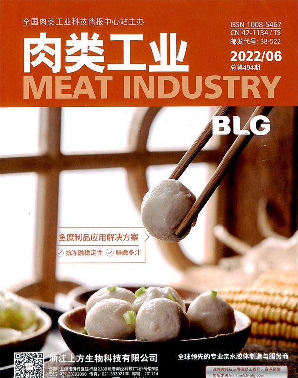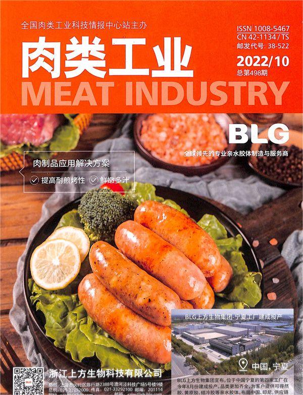 《肉类工业》杂志于1980年创刊,由全国肉类工业科技情报中心站编辑、出版、国内外公开发行,主要介绍和提供肉类方面的科学技术、管理经验、市场分析、生产实践、行业动态等方面的最新信息,侧重于介绍肉类企业实际生产工作中遇到的具体问题与情况,及其解决的方法和措施,为中国肉类加工业现代化服务。本刊专栏有:政策与法规、市场分析与前景、屠宰加工与设备、肉制品加工与设备、产品开发·试验研究、肉类食品添加剂、节能与环保、质量·卫生·标准·安全、知识窗、信息报道等。
