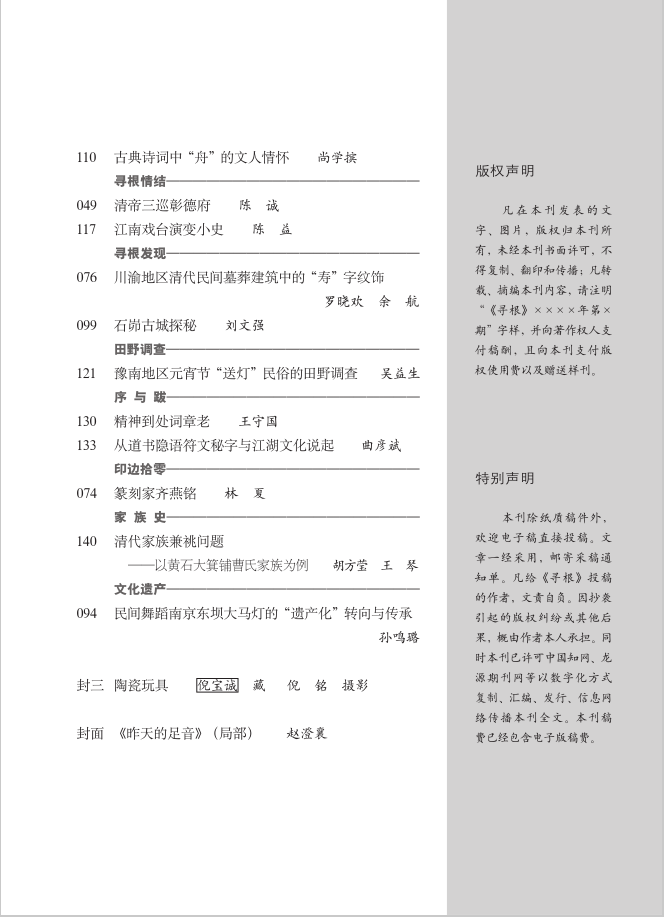《寻根》(双月刊)创刊于1994年,是由大象出版社主办的综合类文化期刊,国内外公开发行。