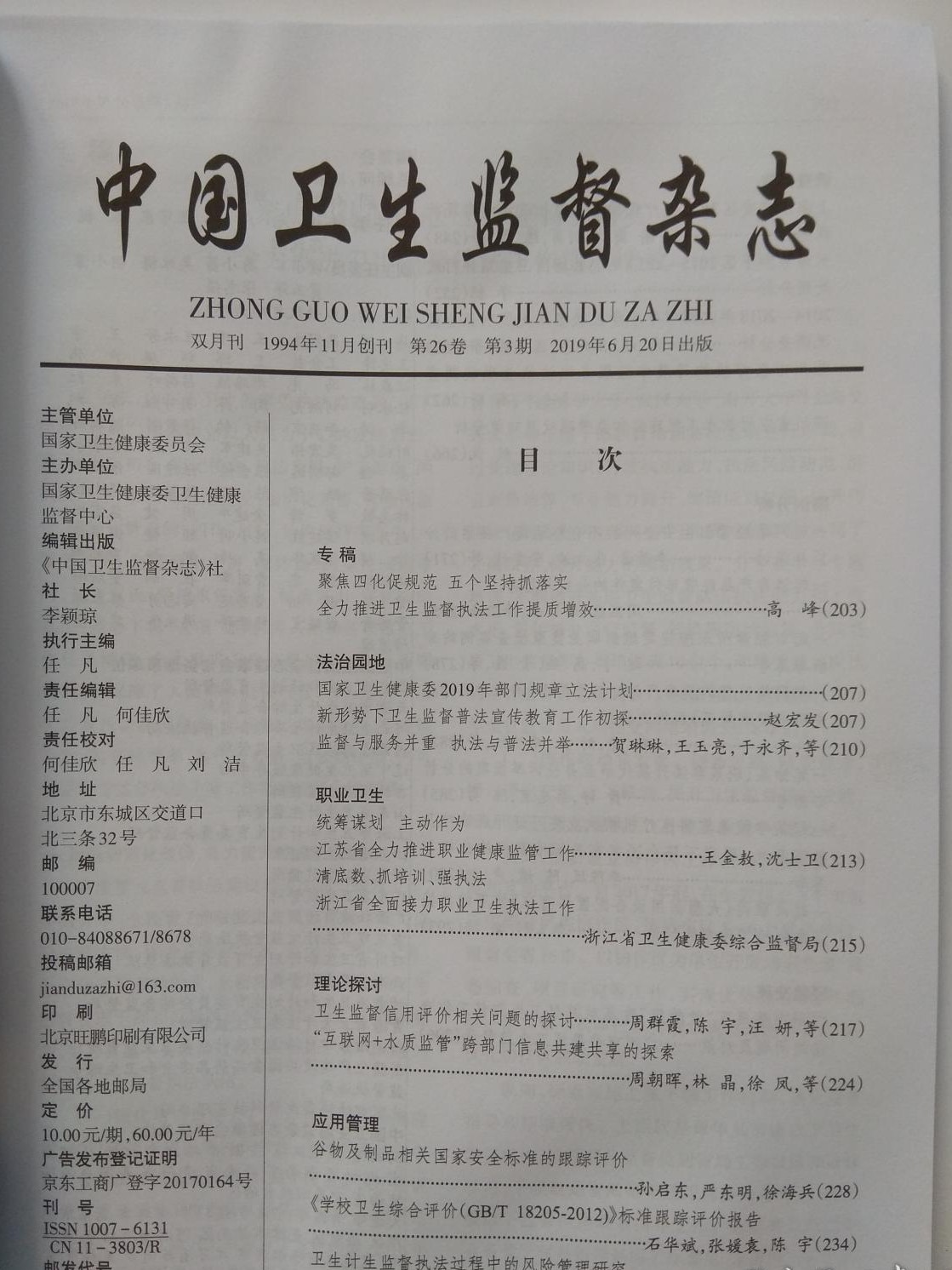 《中国卫生监督》(双月刊)创刊于1994年,由卫生部卫生监督中心主办。