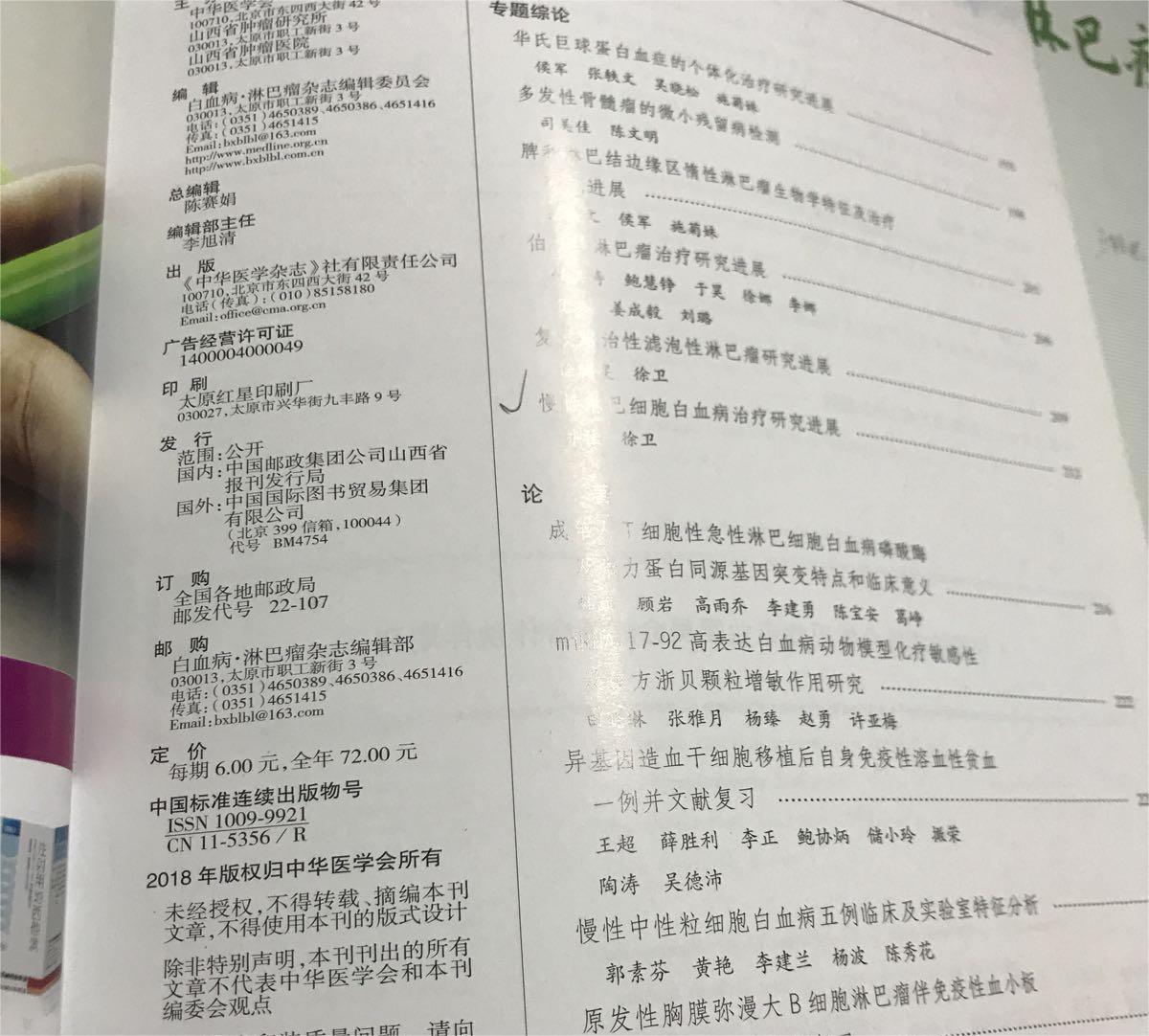 《白血病.淋巴瘤》中华医学会、山西省肿瘤研究所、山西省肿瘤医院主办。本刊是以白血病、淋巴瘤、多发性骨髓瘤为主的血液系统恶性肿瘤专业的学术期刊。办刊宗旨:反映血液系统恶性肿瘤领域的科研成果及学术动态,临床与基础并举,但侧重于临床;普及与提高兼顾,但侧重于提高。为从事白血病、淋巴瘤、多发性骨髓瘤等血液系统恶性肿瘤基础研究与临床诊治的工作者提供交流经验、沟通信息的园地。读者对象为中高级医务工作者。主要栏目有述评、专论、专家讲坛、论著、短篇论著、调查报告、综述、会议速递、讲座、短篇及个案报告等。为中国科技论文统计源期刊(中国科技核心期刊)、中国生物医学核心期刊、中国肿瘤学类核心期刊。被美国《化学文摘》(CA)等国际著名检索期刊及国内各大检索数据库收录。
