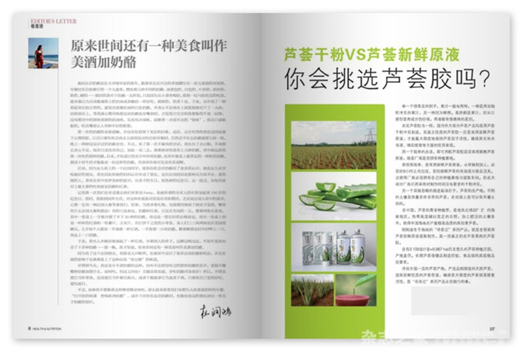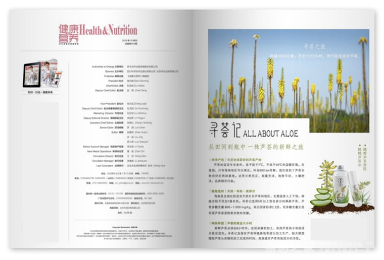 把握潮流理念,分享健康生活方式,提供多方位营养资讯,关爱精英生活,推动健康升级,着力打造健康、自由的生活理念,以最快的速度,以最专业的手法,较大化地为客户和读者创造价值,主要栏目:我们推荐,科学声音,健康榜样,大厨上菜,以提升健康素养为己任,并与卫生系统机构中国疾病预防控制中心联合开设专题栏目,面向城市精英普及营养科学的杂志。