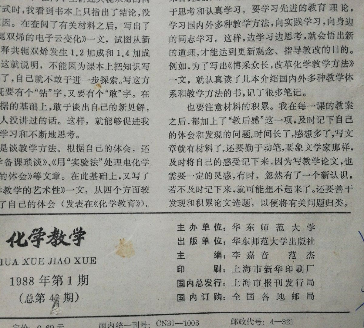 《化学教学》创刊于1979年,是由国家教育部主管,华东师范大学主办的全国性中等教育类期刊,其主要读者为中学化学教师及高等师范院校师生。