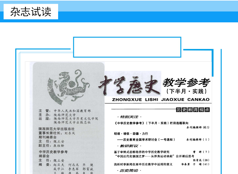 陕西师范大学出版总社拥有影响力深远的中学教学参考系列期刊8科19种——《中学语文教学参考》《中学数学教学参考》《中学政治教学参考》《中学历史教学参考》《中学地理教学参考》《中学生物教学》《中学物理教学参考》《中学化学教学参考》等,其中先后有7个学科期刊获得“全国中文教育类核心期刊”称号。创刊四十多年来,各学科期刊始终以聚焦中外教育动态、引领中学教育实践研究、指导中学教师专业发展、服务基础教育改革为己任;全国众多名校名师汇聚旗下,教育教学教研资源极其丰富,在中国基础教育领域久负盛名。