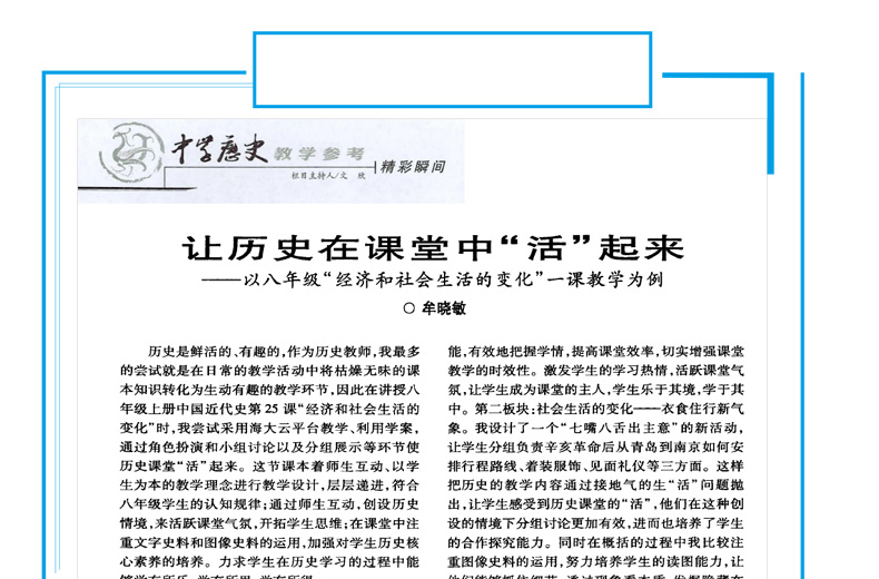 《中学历史教学参考》倡导一种不与现实割裂、不与大众割裂的“活生生”的历史教育,紧密关切“人”的生存、生活、发展乃至创造,主张以“传承”与“创新”互动为契机,深刻认识人类文化遗产,竭力张扬人文精神和科学理念,欲使久罹冷落的“历史”真正体现其作为“全世界的思维活动”的理论价值和实践价值。《中史参》力主一种以人为本的教育观,主张凡教育之一切环节一切手段一切活动,无论教、学还是考,也无论思想、形式还是内容,都必须与人的全面发展为终极追求的目标,并在这一根本点上形成契合互动、和谐发展、与时俱进,凡妨害此目标者,务必摒弃之、革除之。