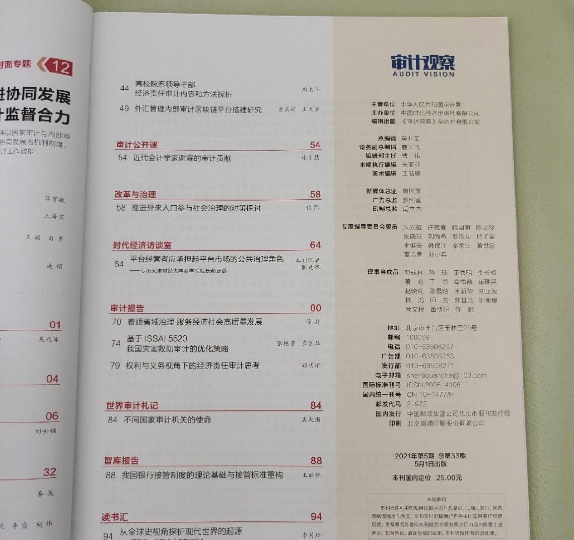 由审计署主管、中国时代经济出版社主办的《审计观察》杂志(国内统一刊号CN10-1477/F),经新闻出版主管部门批准近日在北京正式创刊发行。该刊是面向政府部门决策执行者、审计从业人员、企业高级管理人员、高校和智库机构研究人员等群体的政经类双月期刊。