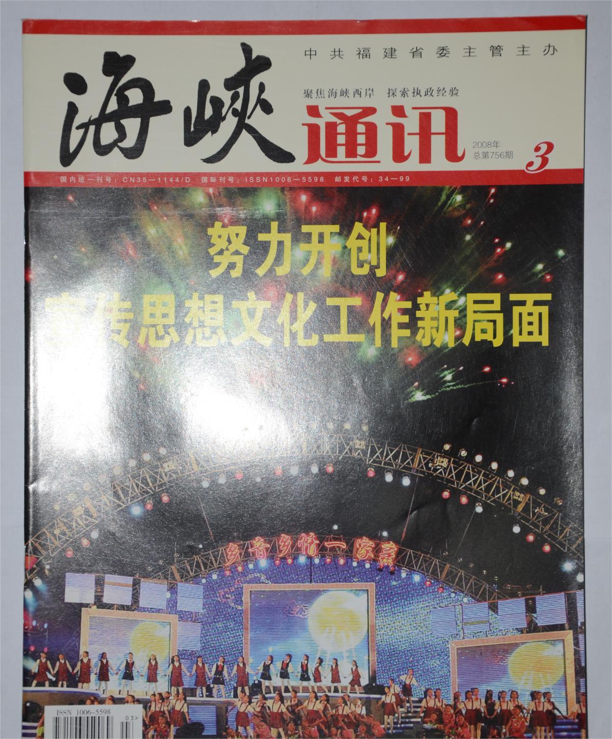 《海峡通讯》(月刊)创刊于1949年10月,是中共福建省委主管主办的机关刊,是面向国内外公开发行的综合性时政期刊。
