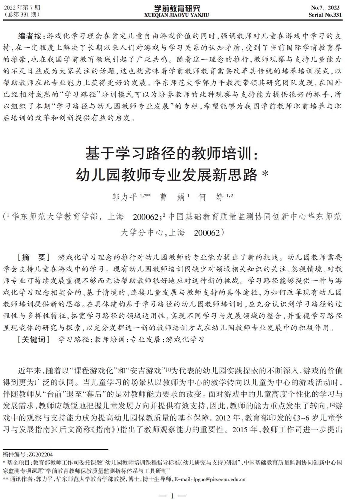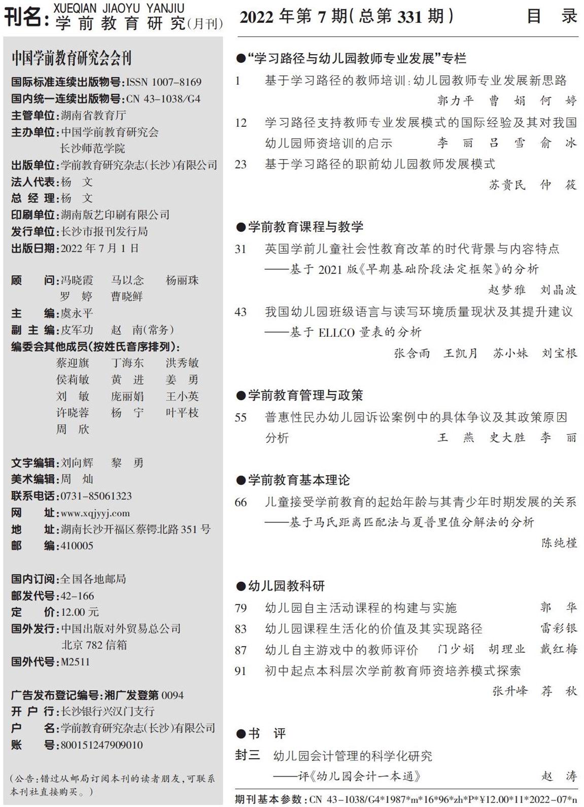 《学前教育研究》(月刊)创刊于1987年,由中国学前教育研究会;湖南省长沙师范学校主办。本刊以及时反映国内外幼教研究成果为特色,以有效指导我国幼教实践为宗旨,是我国最高级别的学前教育专业期刊,全国惟一一本幼教理论刊物。读者和作者群主要是我国的幼教理论研究工作者、幼教管理工作者、各高等院校学前教育专业师生、幼儿园园长以及广大的幼儿园教师。