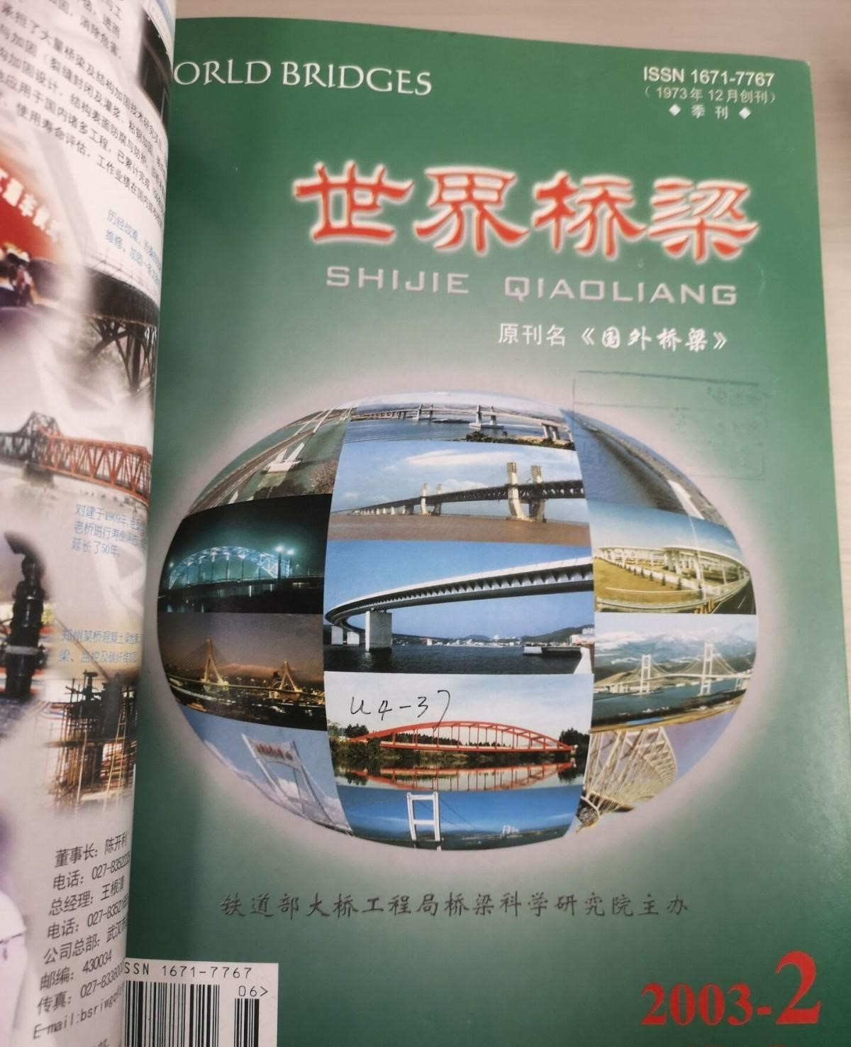 《世界桥梁》(双月刊)创办于1973年,原名为《国外桥梁》,于2002年更名。现由中国铁路工程总公司主管,中铁大桥局集团有限公司主办,中铁大桥局集团武汉桥梁科学研究院有限公司出版。《世界桥梁》主要刊载世界桥梁工程领域的发展动态,包括设计理论、施工技术及管理、建筑材料、试验研究及理论计算等方面的实践经验和理论探讨,并重点突出报道世界各国桥梁工程领域的新理论、新技术、新工艺、新设备、新材料、新方法及最新科研成果。