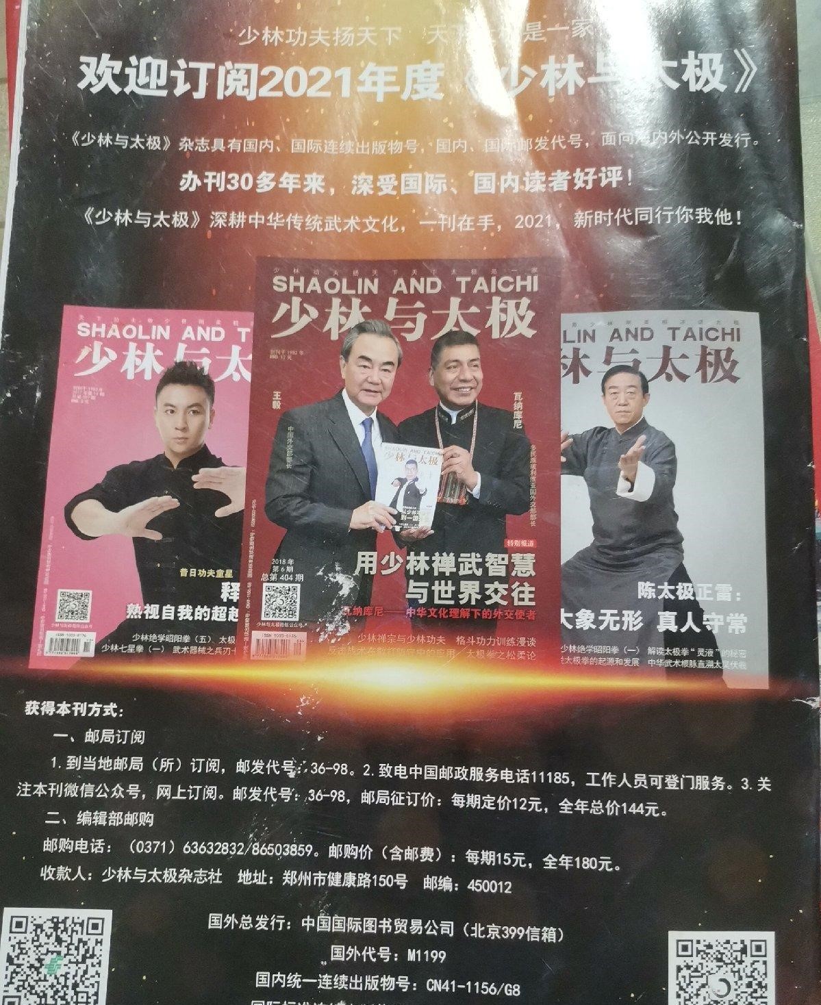 《少林与太极》侧重于少林武艺、太极拳术及地方拳种的介绍。阳刚威猛习少林,儒雅舒缓练太极;雄威拳脚走天下,健体修性养人生。一册《少林与太极》,老少皆友,各取所需,各得所乐。“与时俱进,不断创新,独辟蹊径,自成一格”——是《少林与太极》不变的宗旨。二十余年来,《少林与太极》无论在内容还是质量上均日臻成熟,其足迹遍及美国、意大利、日本、新加坡及香港、澳门、台湾等国家和地区,同时深受国内读者好评。1992年《少林与太极》杂志由国家新闻出版署选送到意大利参加国际书展,受到外国友人的一致好评。