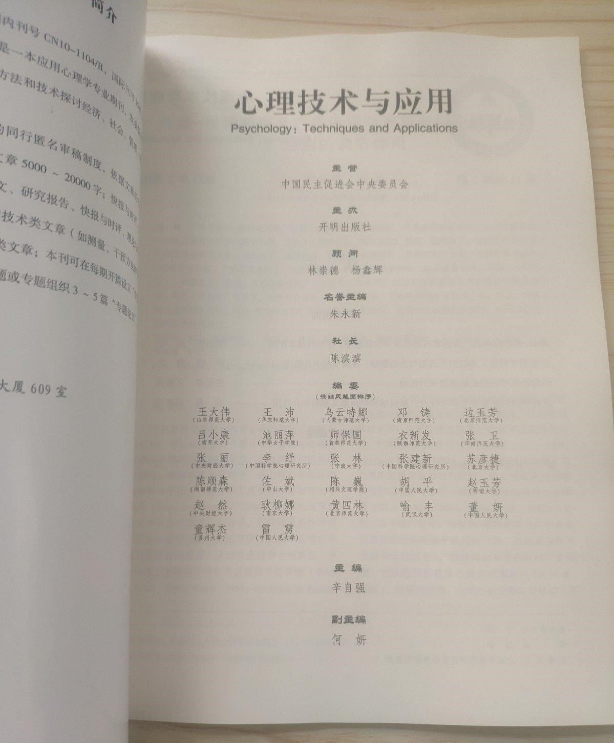 《心理技术与应用》(月刊)创刊于2013年2月,由中国民主促进会中央委员会主管、开明出版社主办。