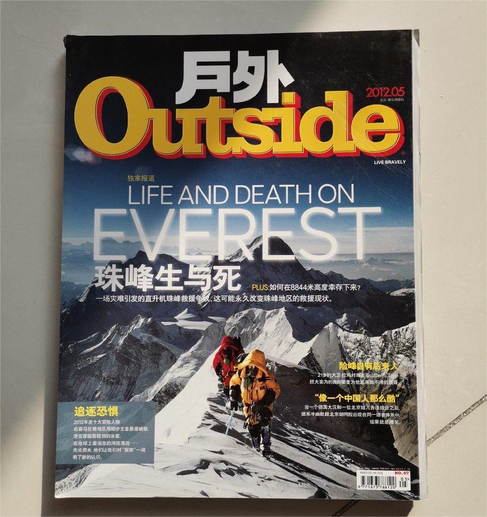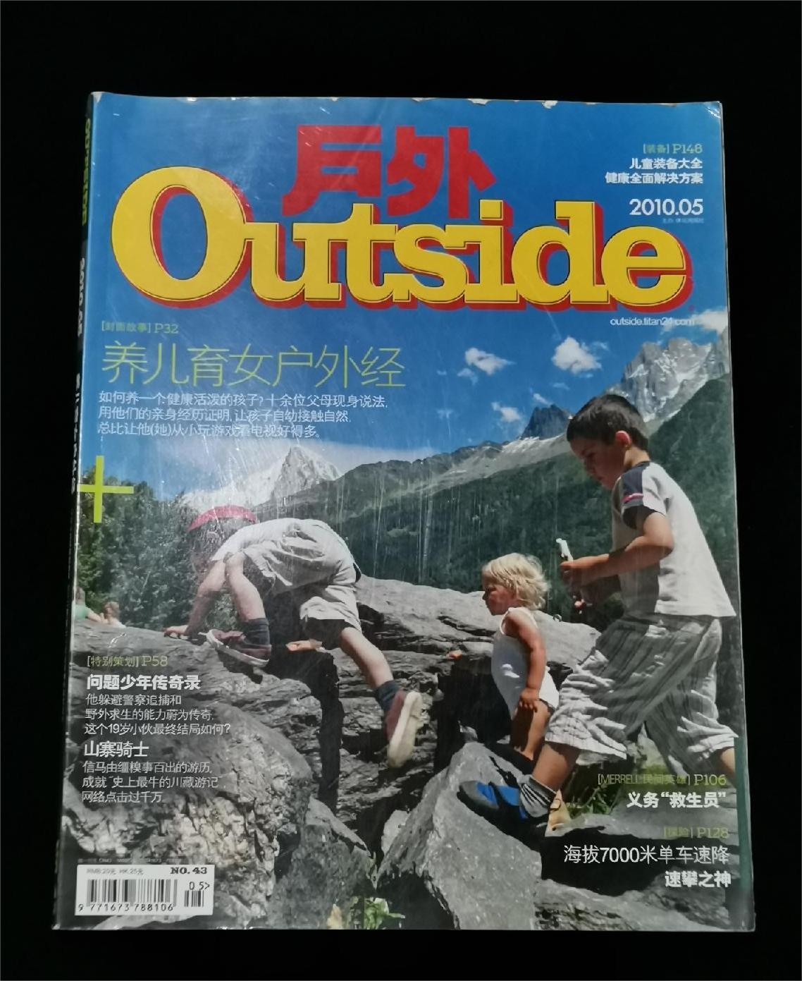 《Outside》于1978年在美国创刊,发展到今天,已经是美国发行量最大的户外杂志,每月读者超过200万(数据来源:MRI Market Solutions Division)。入选2005年全球杂志势力TOP100排行榜,是唯一一本进入前100名的户外类杂志。同时也是美国出版史上唯一一本连续三年获得杰出期刊大奖(National Magazine Awards for General Excellence)的杂志。《Outside》2003“美国期刊奖”最佳生活服务奖得主,与如今遍及全球倡导户外活动的自然生活方式不谋而合。Outside之卖点在于强势的专题式操作模式,美丽外景结合美妙的描写手笔,关于旅行装备与健康无微不至的指导。对户外旅行这一方面有兴趣的朋友可以看看。《Outside》2006年10月来到中国,中文名为《户外》。《户外》将继续秉承《Outside》“倡导积极健康生活方式”的理念,为中国读者提供全球同步的户外现象、行为、事件的客观报道,并涉猎人文地理、科学探险等内容。在讲述精彩有趣的户外故事和户外人的同时,我们努力传递一种乐观向上的价值观——梦想、勇气、自我实现、热爱自然、追求自由…《户外》简介:在运动中观察在观察中运动 在思考中体验 在体验中改变《户外》杂志为中国户外运动的门户期刊,是全国唯一的集户外运动俱乐部、旅行社、用品生产厂家、体育公司等为一体的综合经济信息类时尚刊物。《户外》杂志主要读者对象:企业决策层领导、经营管理层领导、市场营销人员、运动爱好者、时尚的开拓者和追随者;《户外》办刊宗旨:以时尚、运动为背景,广泛探索时尚、户外运动领域的理论与实践问题;以户外运动为线索,集休闲、购物、摄影、感悟、觉醒、体验等为一体的以健康为主题的时尚刊物。《户外》杂志覆盖面100%的全国各个户外运动俱乐部; 100%的全国各个户外用品装备生产厂家以及经销商; 100%的全国各个旅行社; 95%的全国各个体育公司; 100%的深圳航空公司所有航班; 80%的深圳高档休闲娱乐场所; 80%的全国户外运动场所; 65%的航空客货代理企业; 100%的深圳机场贵宾厅、码头以及相关各部门; 20%的空军部队; 35%的港、澳、台地区航空企业; 70%的户外用品国际知名品牌; 95%全国知名企业; “户外——健康活力、回归自然、商务信息、文化品位。”