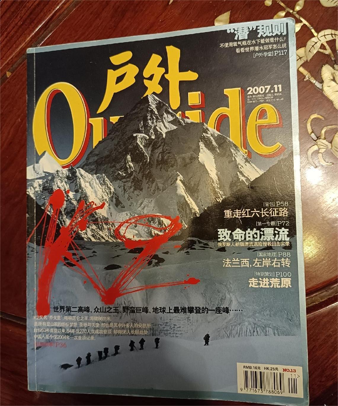 《户外》杂志为中国户外运动的门户期刊,是全国唯一的集户外运动俱乐部、旅行社、用品生产厂家、体育公司等为一体的综合经济信息类时尚刊物。