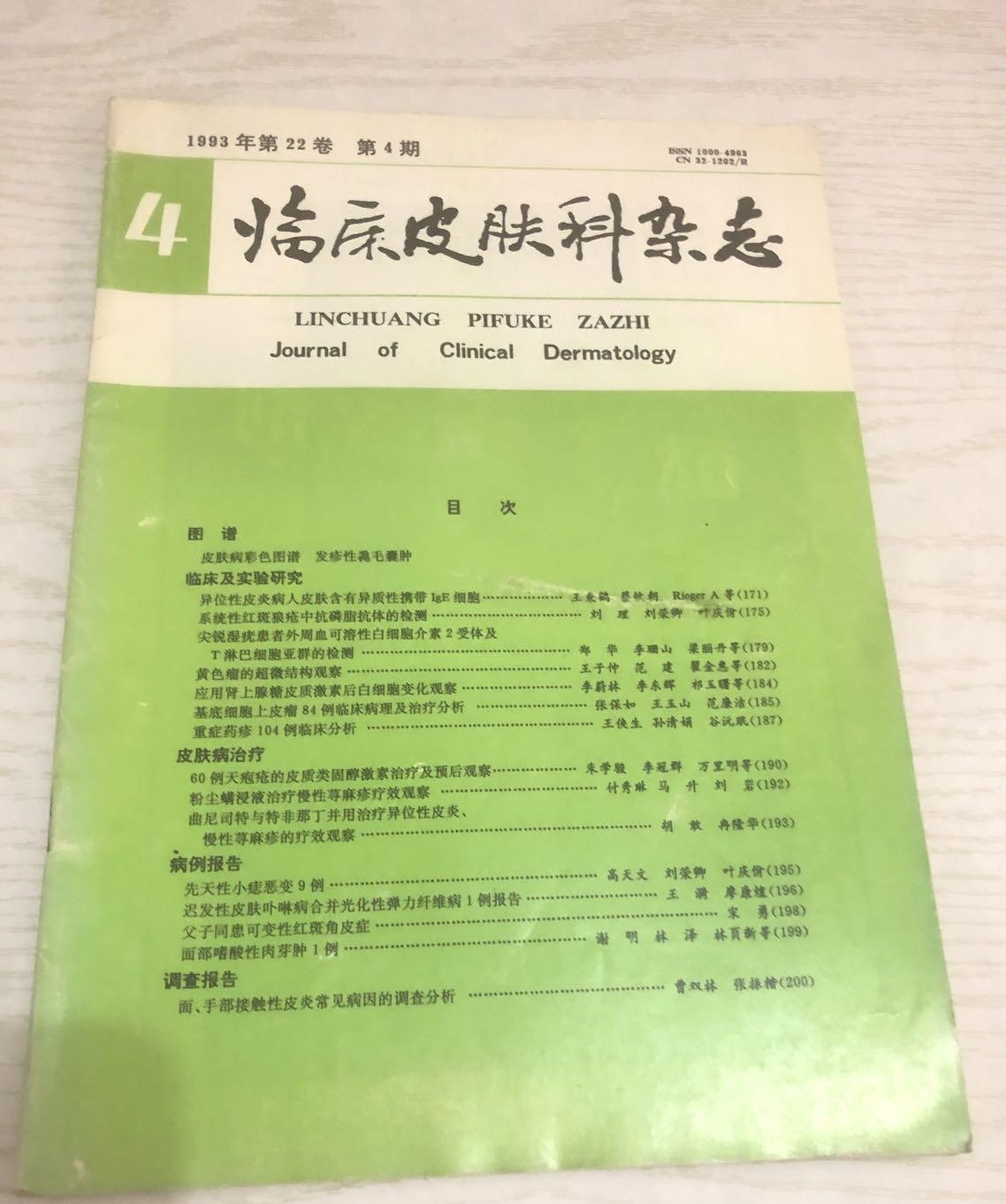 《临床皮肤科杂志》(月刊)创办于1972年,是由江苏省卫生厅主管、南京医科大学第一附属医院(江苏省人民医院)主办的一本皮肤性病学的专业性期刊。 《临床皮肤科杂志》原名《皮肤病防治研究通讯》,1981年改名为《临床皮肤科杂志》,1980年起开始向国外公开发行。在30年的办刊过程中,本刊始终遵循普及与提高并重的办刊方针,以临床为主,面向基层,以其实用性深受全国各级皮肤科工作者的欢迎,现已成为中国科技论文统计源期刊、皮肤科学中文核心期刊、中国生物医学核心期刊,2001年又入选中国期刊方阵“双百”期刊行列。本刊从2002年起由双月刊改为月刊,每月5日出版,大16开,全彩铜板印刷,印刷质量接近国外皮肤科杂志的水平。所有文章图文并茂,充分体现皮肤科的临床特点,在同类杂志中形成了自己的特色,发行量现居国内皮肤科杂志之首。 《临床皮肤科杂志》被北大1992版核心期刊、北大1996版核心期刊、北大2000版核心期刊、北大2004版核心期刊、北大2008版核心期刊收录,是皮肤科学中文核心期刊。
