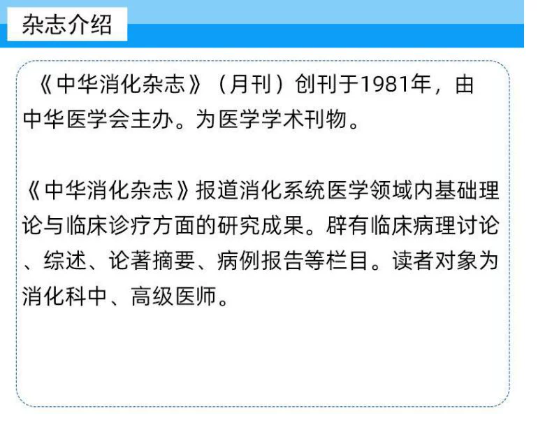 《中华消化杂志》(月刊)创刊于1981年,由中华医学会主办。为医学学术刊物。...