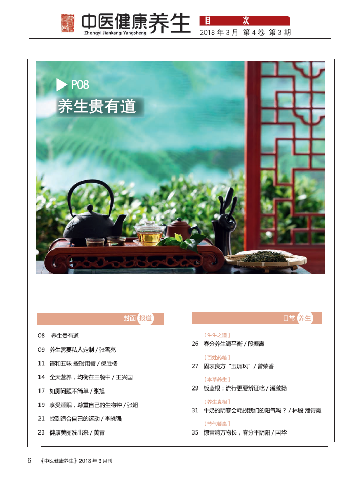 《中医健康养生》杂志是国家中医药管理局主管、中国中医药报社主办、《中医健康养生》杂志社编辑出版的第一权威中医养生杂志,全彩月刊,全国发行。
