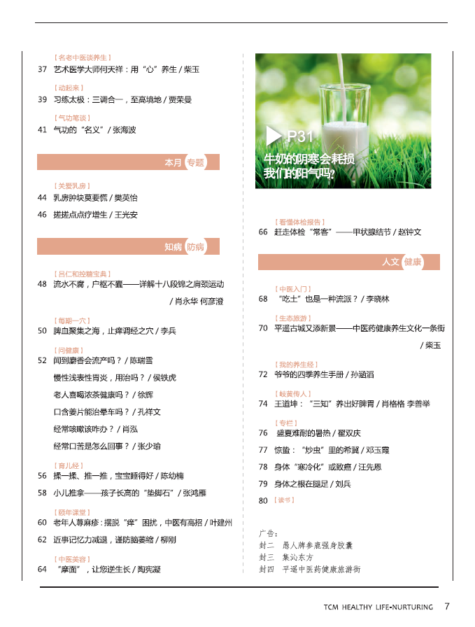 杂志依托全国中医药行业权威媒体中国中医药报社丰富的信息和专家资源,依靠报社和杂志社经验丰富的编辑团队,发挥行业核心优势,诚心正意向社会大众推荐真专家、真方法。《中医健康养生》杂志每期包含封面报道、养生汇、治未病和大健康4个板块,突出权威性、原创性和服务性,集中医养生智慧,发行业权威声音,传播科学的中医养生观念和方法,努力成为中医养生保健领域的指航灯塔。