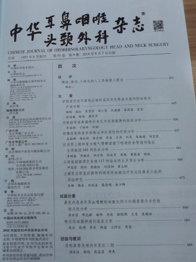首页 > 医学 / 美食 / 酒店 > 外科 > 中华耳鼻咽喉头颈外科杂志