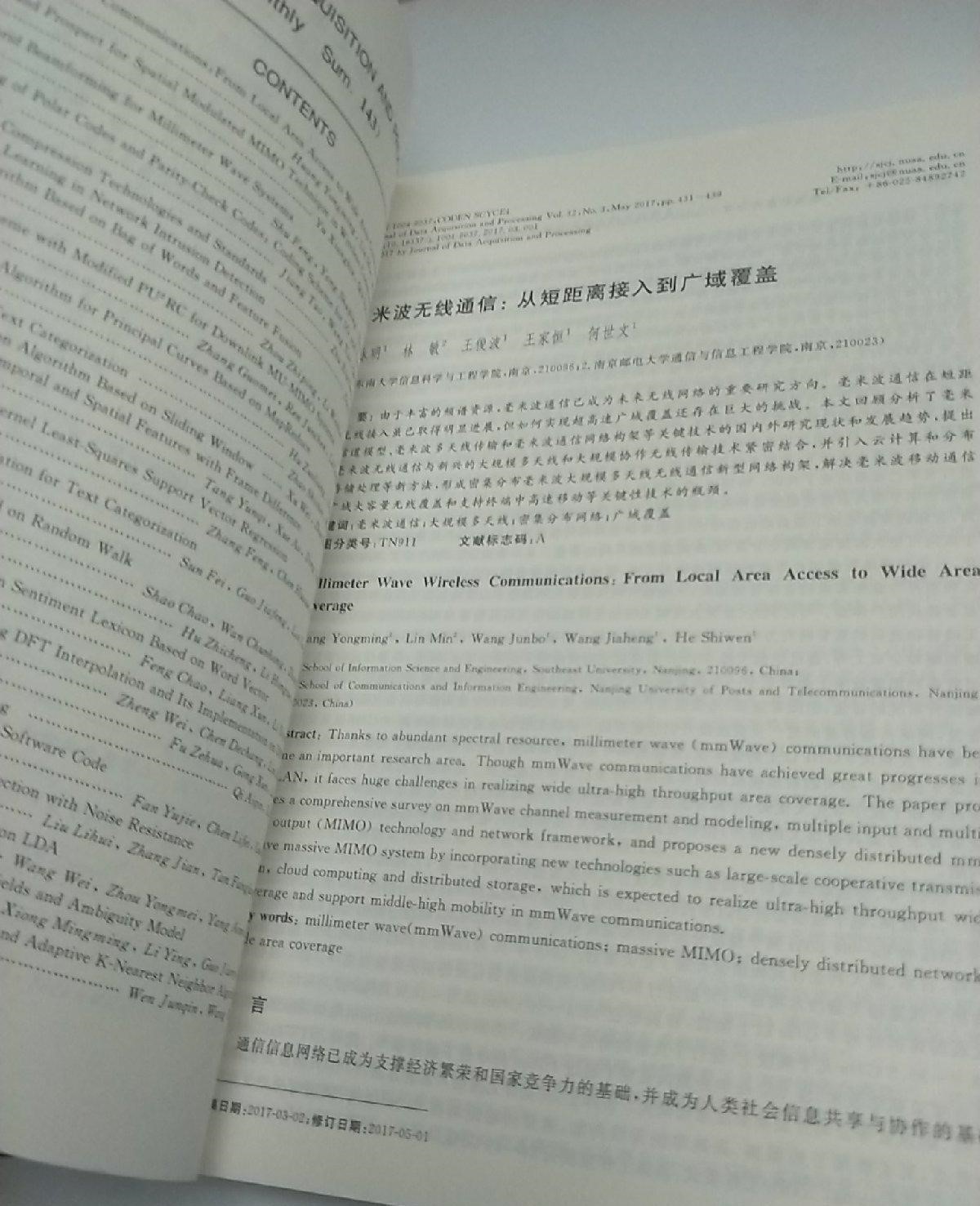 《数据采集与处理》是中国科协主管,由中国电子学会、中国仪器仪表学会所属信号处理学会,中国仪器仪表学会、中国物理学会所属微弱信号检测学会和南京航空航天大学联合主办,南京航空航天大学出版,并向国内外公开发行的技术刊物。荣获2007年被评为江苏省优秀期刊、中国科协优秀期刊、江苏省一级期刊双效期刊。 《数据采集与处理》主要反映信号处理,测试工程和计算机应用等方面的科学成果,注重工程应用,力求创新。