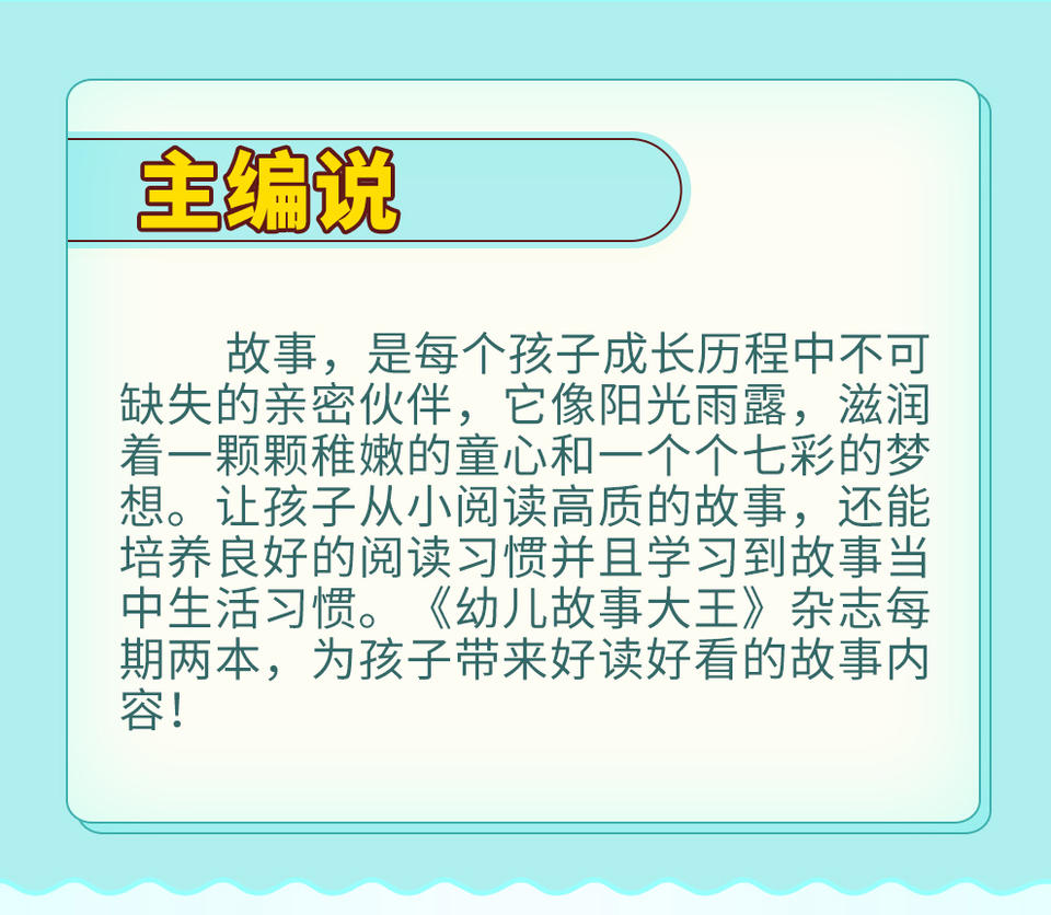 读绘本、听故事、编故事,全方位培养孩子的早期阅读能力和语言表达能力,尽在《幼儿故事大王》杂志。