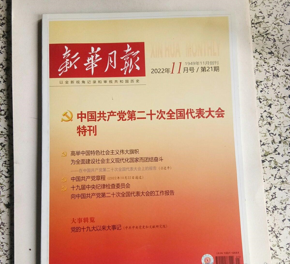 《新华月报》于1949年11月创刊发行,是我国唯 份大型政治性、文献性综合月刊。它由国家新闻出版总署主管,人民出版社主办。半个多世纪以来,它记载了新中国成长的历程,汇集了不同时期党和国家最重要的文献资料和国内外重大事件的报道。为人们认识、了解和研究新中国的内政外交及国际问题提供了数量巨大、较为系统、内容权威的各类材料。中华人民共和国成立之际,胡愈之同志首任中华人民共和国出版总署署长,在一些同志的建议下 决定创办一份类似他三十年代在上海主办过的大型综合文摘刊物