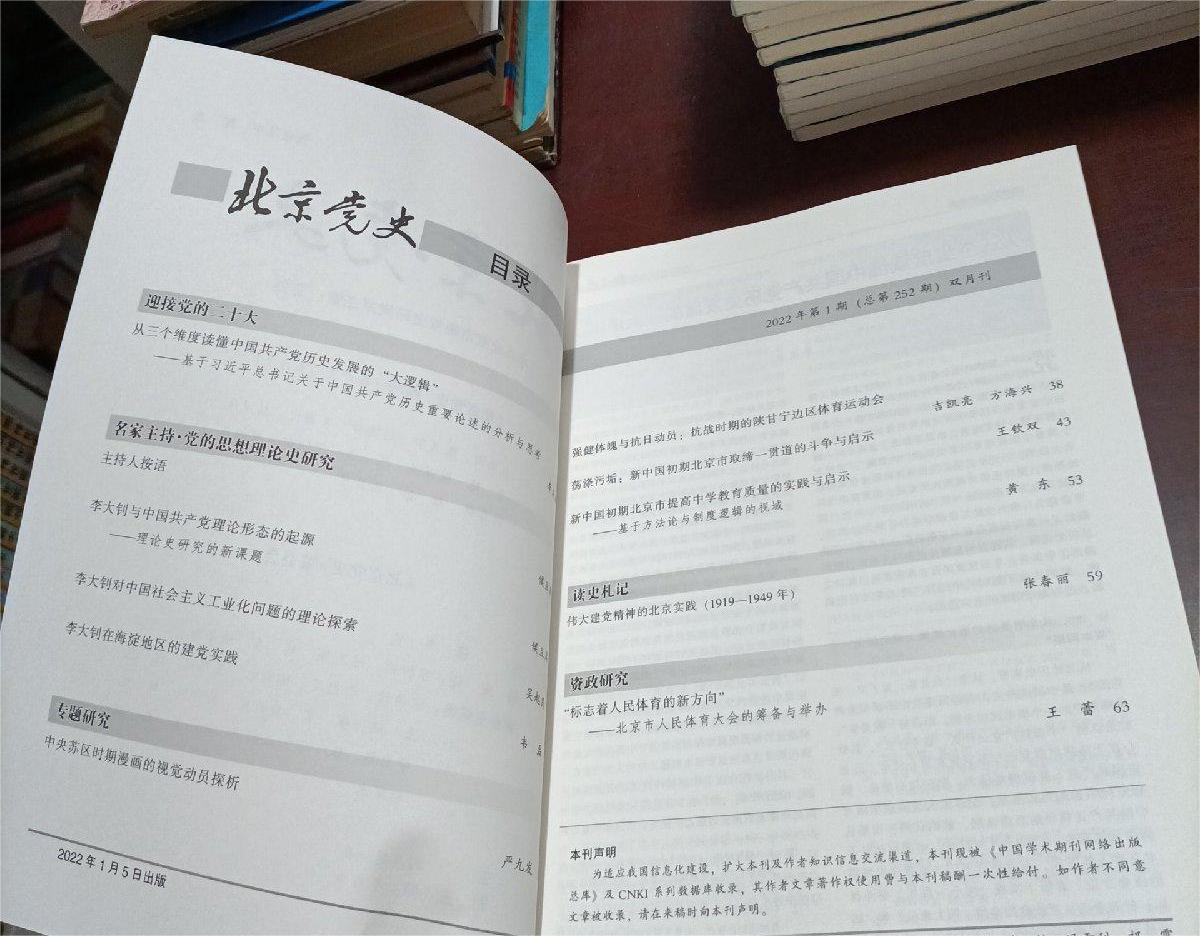 《北京党史》(双月刊)创刊于1982年,是由中共北京市委党史研究室主管、主办的政治、法律类刊物,大十六开,总发行量36千册。初始刊名为《北京党史资料通讯》,系内部刊物,不定期出版;1987年7月更名为《北京党史通讯》,改内部双月刊;1989年7月更名为《北京党史研究》,1993年1月经国家新闻出版署批准正式出版、公开发行;1999年1月改为现刊名,每逢单月5日出版。1996年荣获北大核心期刊。