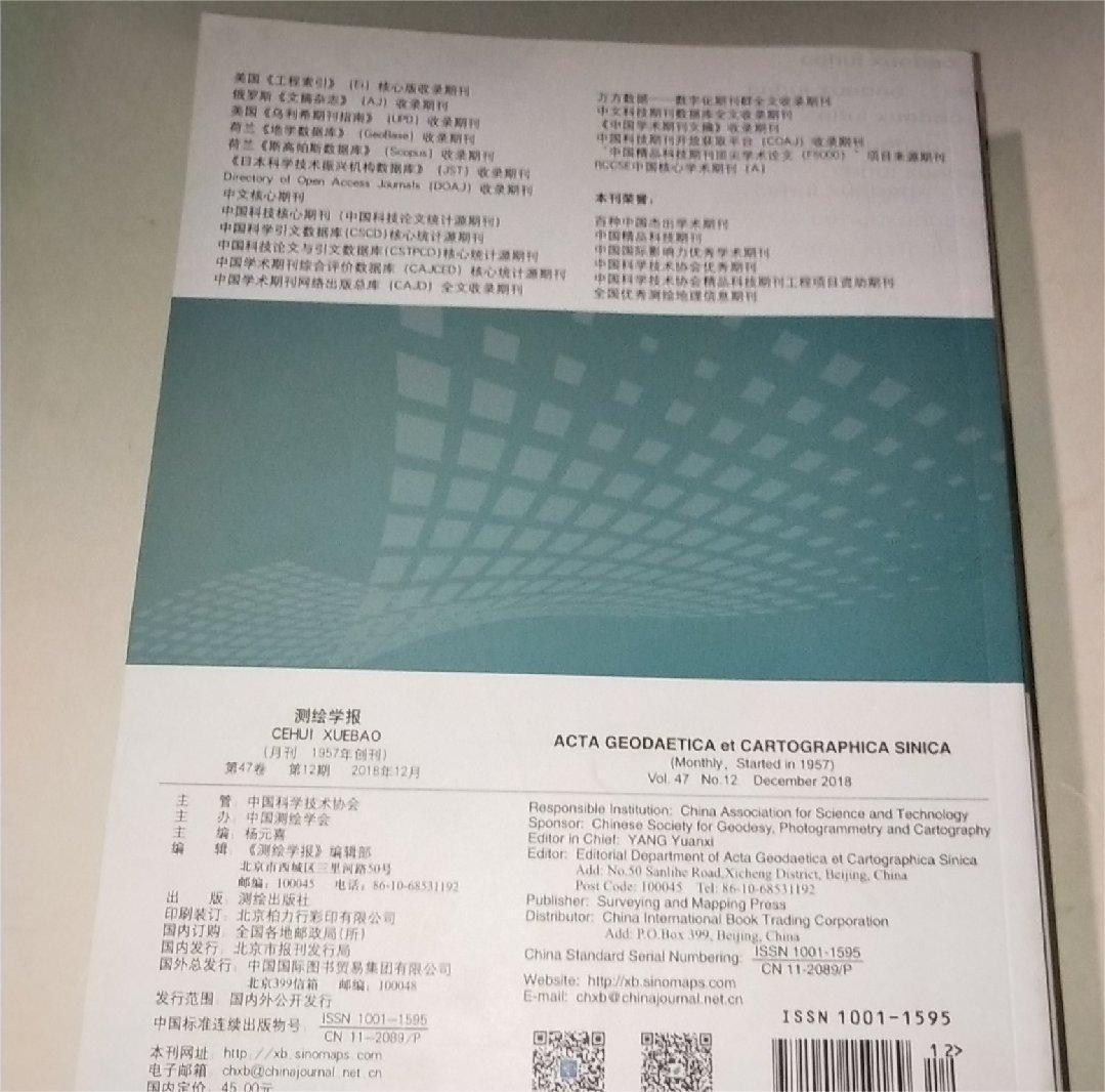 《测绘学报》(月刊)1957年创刊,是国家级综合性学术刊物。也是我国提交国际测绘科技交流的主要文献,发表中、英两种文字的论文,是我国最具影响力的测绘期刊。