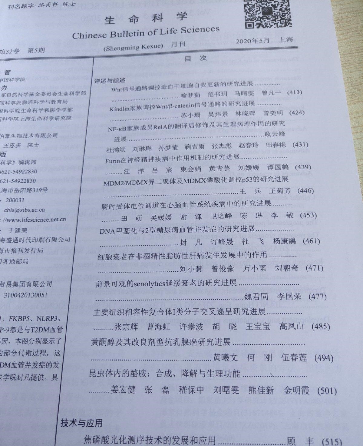 《生命科学》主要刊登:生命科学范围内的评述性或综述性文章和重大项目介绍、研究进展与管理经验,同时报道有关领域的科研信息、科学家介绍、研究机构介绍和书评等内容。读者对象:是从事生命科学与相关科学的研究、教学和管理的工作者,以及有关学科大专院校学生。获奖情况:1996年获上海市优秀科技期刊评比一等奖。
