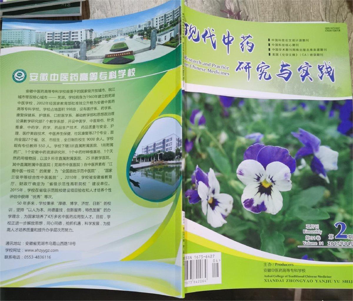 《现代中药研究与实践》(双月刊)创刊地1987年,由中华中医药学会中药鉴定委员会和安徽中医药高等专科学校联合主办。