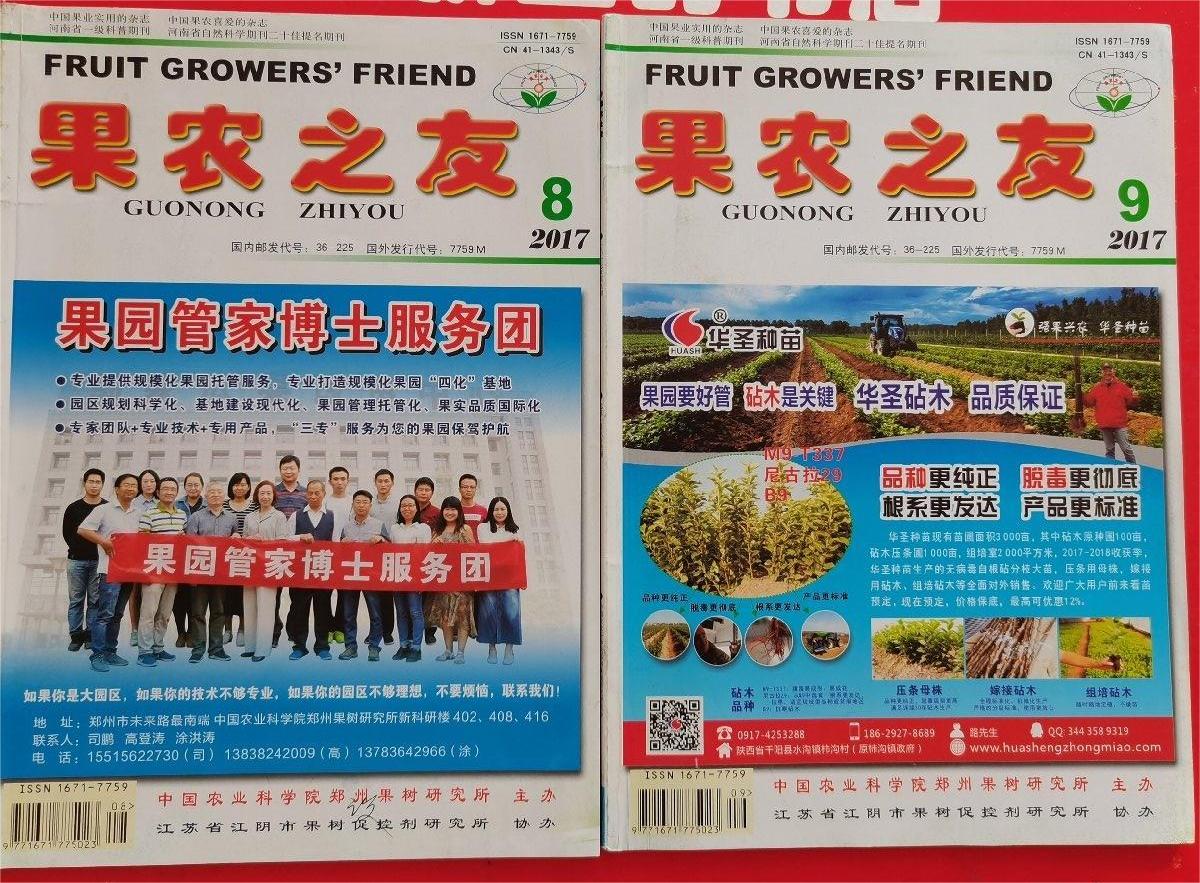 《果农之友》(月刊)创刊于2000年,是中国农业科学院郑州果树研究所主办,果业界惟一一本大16开双色套印国家级科普期刊,是果业界最具权威性、技术性、前瞻性期刊之一。选发最新实用技术,荟萃果农致富信息,传播果业成功范例,引导果农发家致富。国内外著名果树专家、学者用果农的言语,把高新的果业技术和成果,撰写成您看得懂的科普文章,使您一看就懂,一用就灵。每年有600余篇科普文章和1000余条各类果业信息,为您提供科学、权威、可靠的果业生产指导。