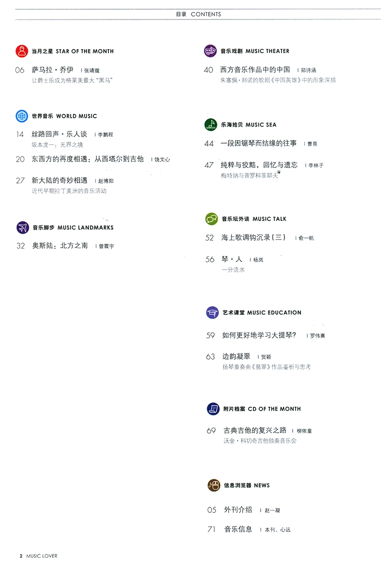 《音乐爱好者》1979年创刊至今,既坚持自己优雅精致的办刊传统,又和广大爱乐人一起,不断向更加辽阔的领域伸展新的视野和触角。对爱好者来说,音乐既是一份心心念念的精神向往,也是生活中扎扎实实的一个组成部分。《音乐爱好者》以音乐欣赏为中心,在经典音乐长廊里勾沉索隐,反映当代重大的音乐事件,将欣赏音乐与了解音乐、享受音乐结合起来。《音乐爱好者》每期刊发国际乐坛最新动态、国外最具影响力的音乐杂志的最新介绍、国内市场热门唱片信息等,并登载兼顾深度与广度、交融知识与趣味的爱乐文章,随刊附赠独具特色的完整经典音乐CD,是集聆听与阅读、参考和收藏于一身的爱乐良友。